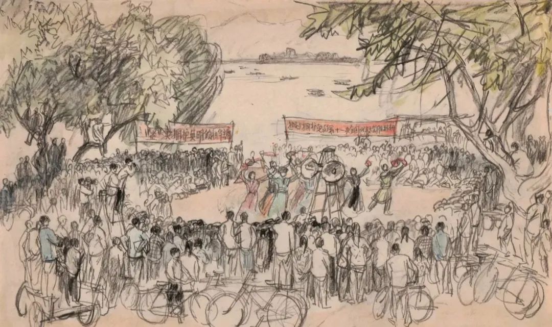 ▲西湖畔欢庆“十一”大场景(1977 年)