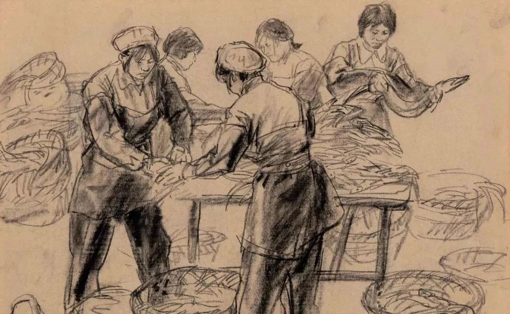 ▲海岛留守妇女在洗刷番薯(1978 年)
