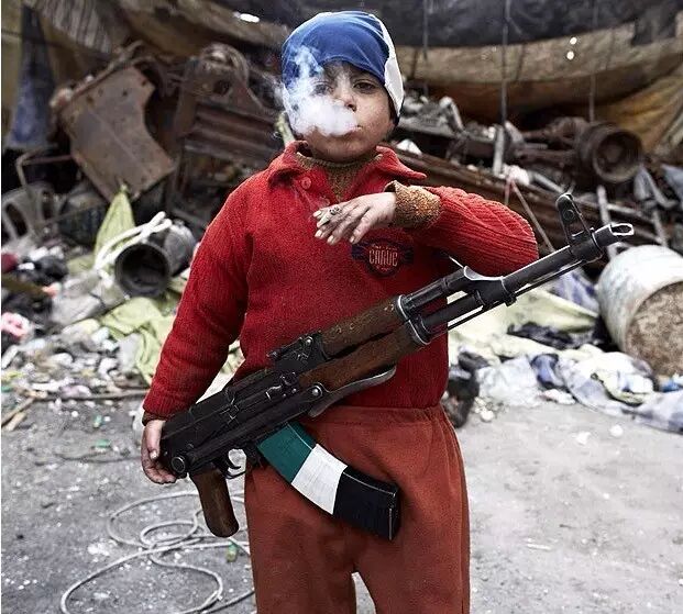 一个叙利亚男孩从废墟中救出了他的妹妹