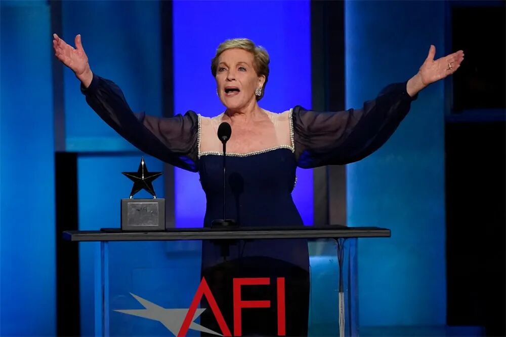 美联社6月14日报道,现年86岁的著名演员朱莉·安德鲁斯(Julie Andrews)在洛杉矶杜比剧院领取了由美国电影学院(AFI)颁发的终身成就奖。这是她继2019年的威尼斯电影节终身成就奖后,再次获得该奖项。