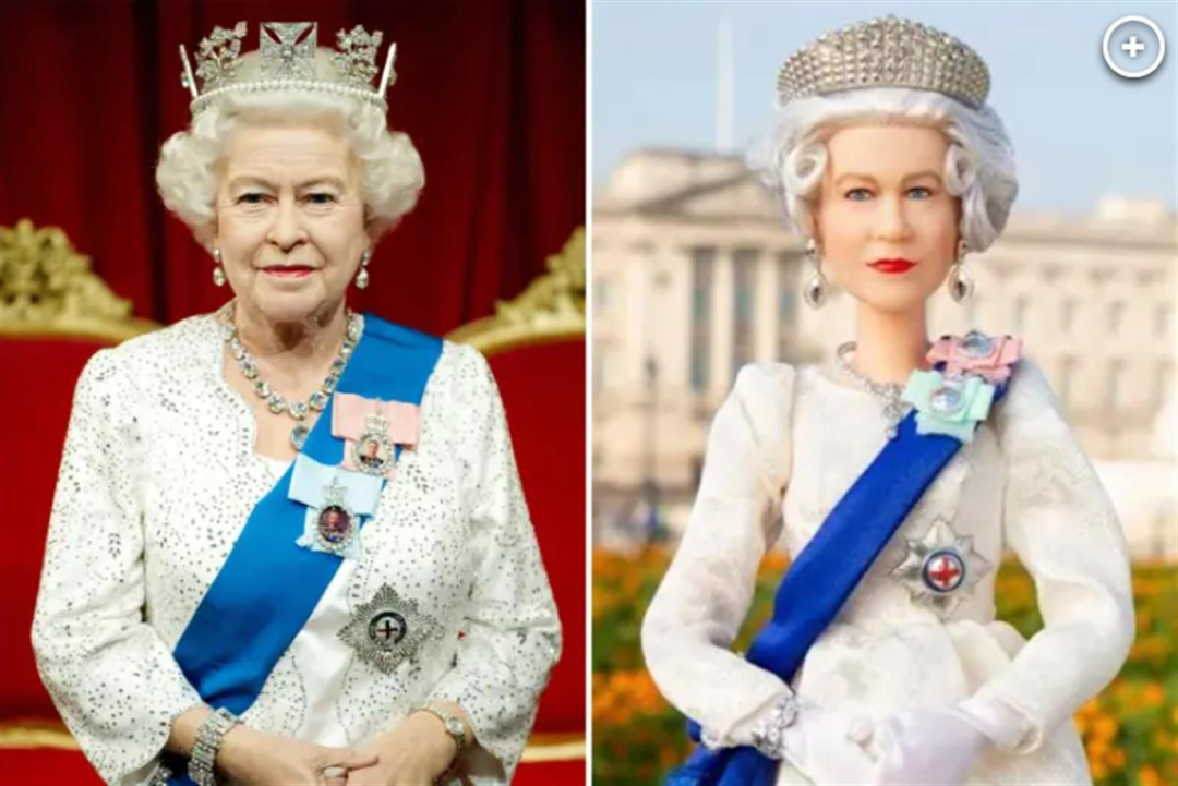 这款芭比娃娃的设计灵感来自于女王最具标志性的造型:皇室正装装扮。