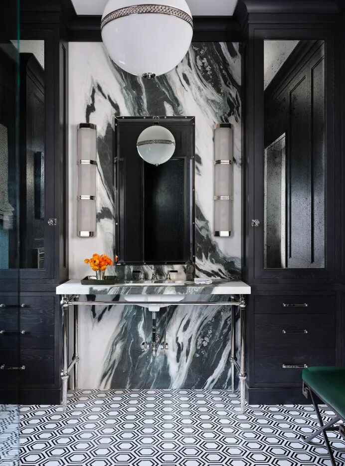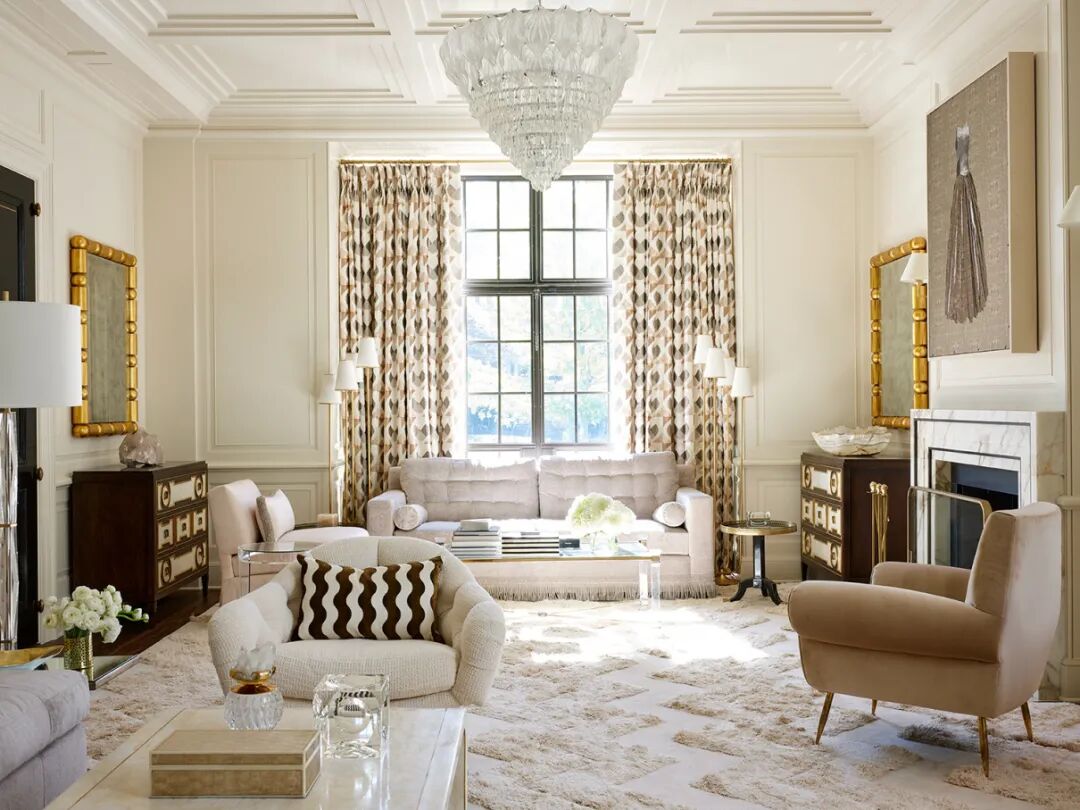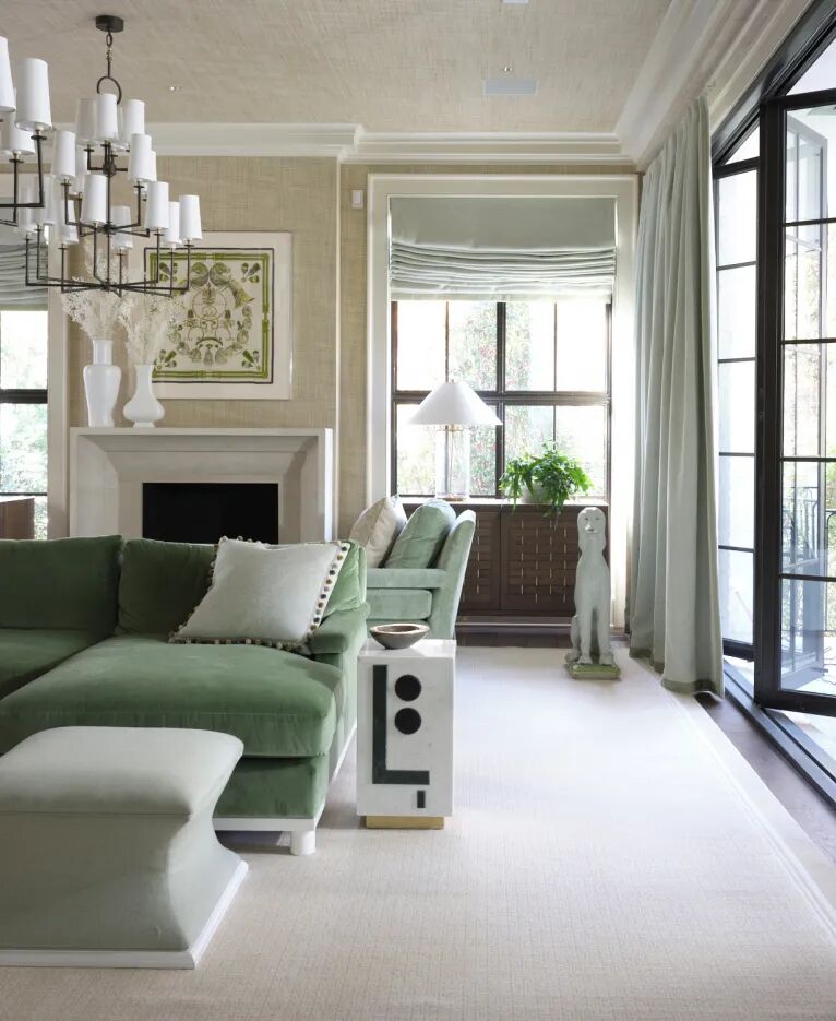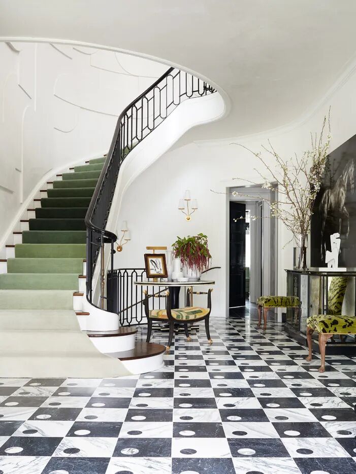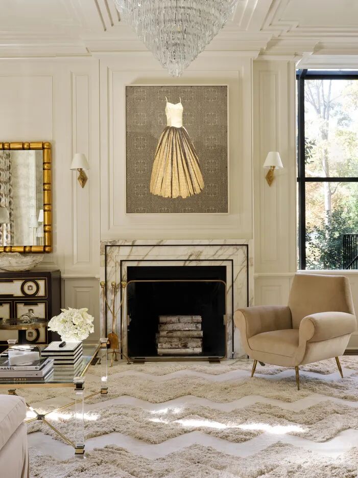 这是座历史悠久的亚特兰大庄园的女士休息室,Melanie Turner用温暖的杏色阴为墙壁和天花板上了明亮的彩漆,非常具有戏剧魅力。定制沙发采用Pierre Frey天鹅绒装饰,还有漂亮的丝光流苏作为细节搭配。