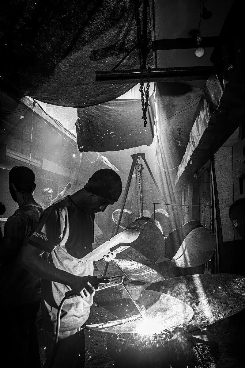 除了拆船、这里还有炼油、造船、钢铁、纺织、玻璃、器皿等等加工产业。重油污、重金属、致命石棉和各种有毒气体早已污染了这里的空气和海水,但对工人们来说这些都不是主要问题。