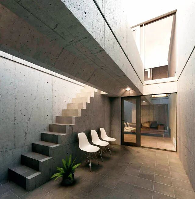 设计师曾经设计的别的住宅,都是以一些装饰性较少的几何形态出现的。