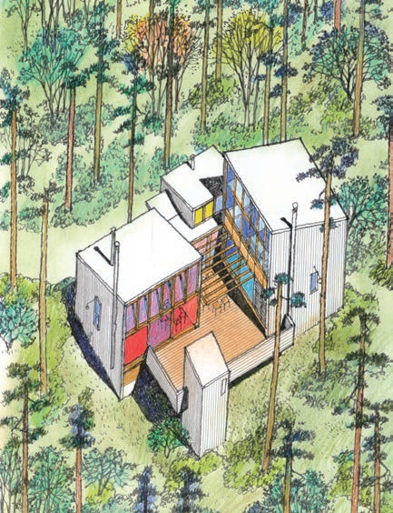 宫胁檀设计的广场屋山庄,就是由4个箱体组合而成的建筑,这里有供欢乐团圆的箱体,有供在此安眠的卧室箱体,以及厨房、浴室等用水区的箱体,甚至还有一个可供人休息冥想的小箱体。