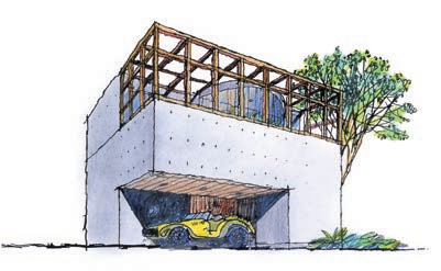 宫胁檀设计的早崎宅,从悬崖上突起的箱体(图源:《住宅设计解剖书 宫胁檀作品集》,江苏凤凰科学技术出版社)
