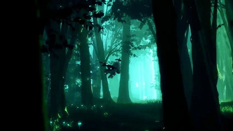 在派蒙的带领下,观众视野穿越密林