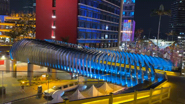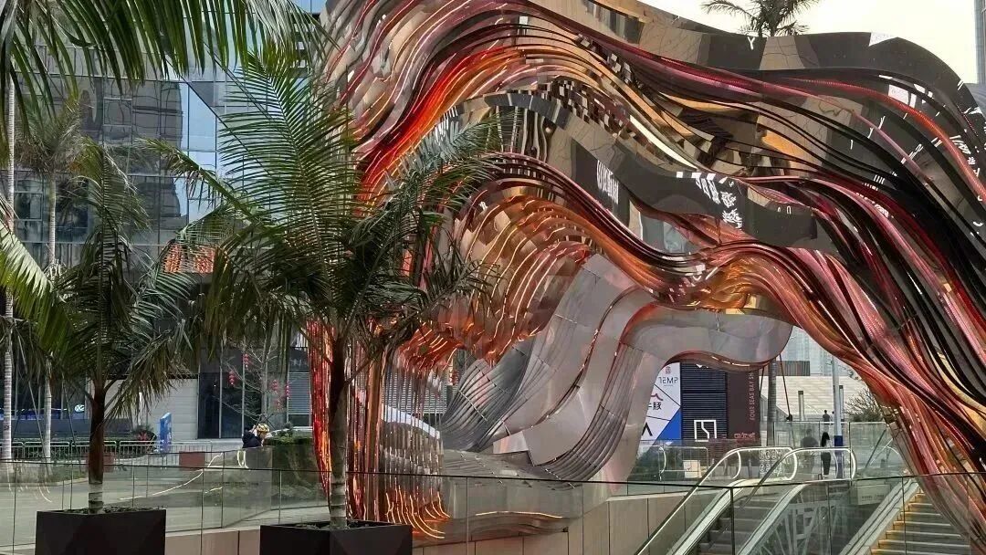 本次广州之旅告一段落。离开前,张周捷回访了位于番禺四海城的艺术地标。数字雕塑的状态保持良好,在繁华的商业区散发着科技的魅力。
