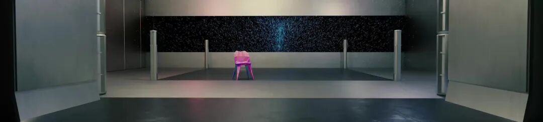 EndlessForm的展位设置在场馆入口处,一进门就能看到排列在水上的椅子矩阵,背后的LED屏幕上轮播着数字资产、以及雪山和沙漠等虚拟场景。