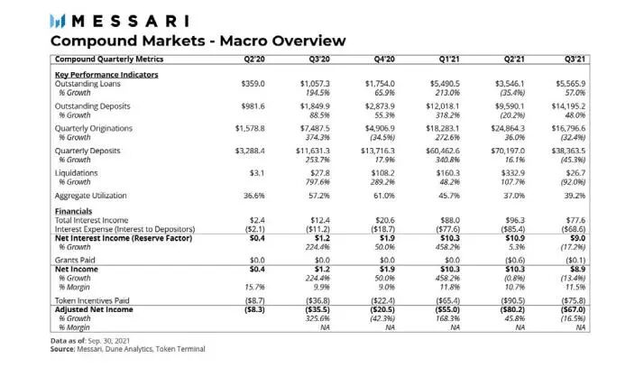 Token Terminal(基本数据)、The Graph(链上数据)、Nansen(资金流)、Dune Analytics(聚合指标)、DeFiLlama(TVL)和 Messari(市场数据和链下事件)现在是帮助用户全面了解协议层面的性能的必不可少的工具。在全球去中心化分析社区中,这些数据源的组合提供了显著的结果。以 Compound 为例。