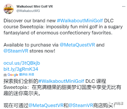 近日,高尔夫模拟游戏《Walkabout Mini Golf》推出新DLC内容。DLC更新包名为《Sweetopia》,在Quset以及主机VR两个平台同步更新。游戏主题走甜美路线,里面包含36个新洞可供打球。