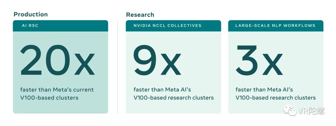 RSC将帮助Meta的AI研究人员构建可以从数万亿个示例中学习的AI模型,它能跨数百种不同语言工作,无缝分析文本、图像和视频,开发新的AR工具等等。