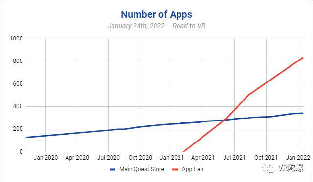 这种差异表明,有更多的开发者希望进入主商店。迄今为止,只有少数几个应用程序已经从应用实验室成功上线Quest主商店。