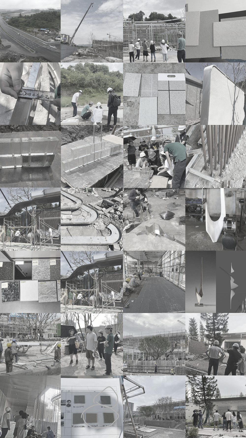 一体化的大门廊架带来很多设计与施工界面的交接,新的工艺和材料之间的碰撞又带来诸多挑战,施工落地由甲方、设计和施工三方通力合作,多次尝试,紧跟现场节奏,全程落地管控。最后感谢相互的努力、支持和包容。
