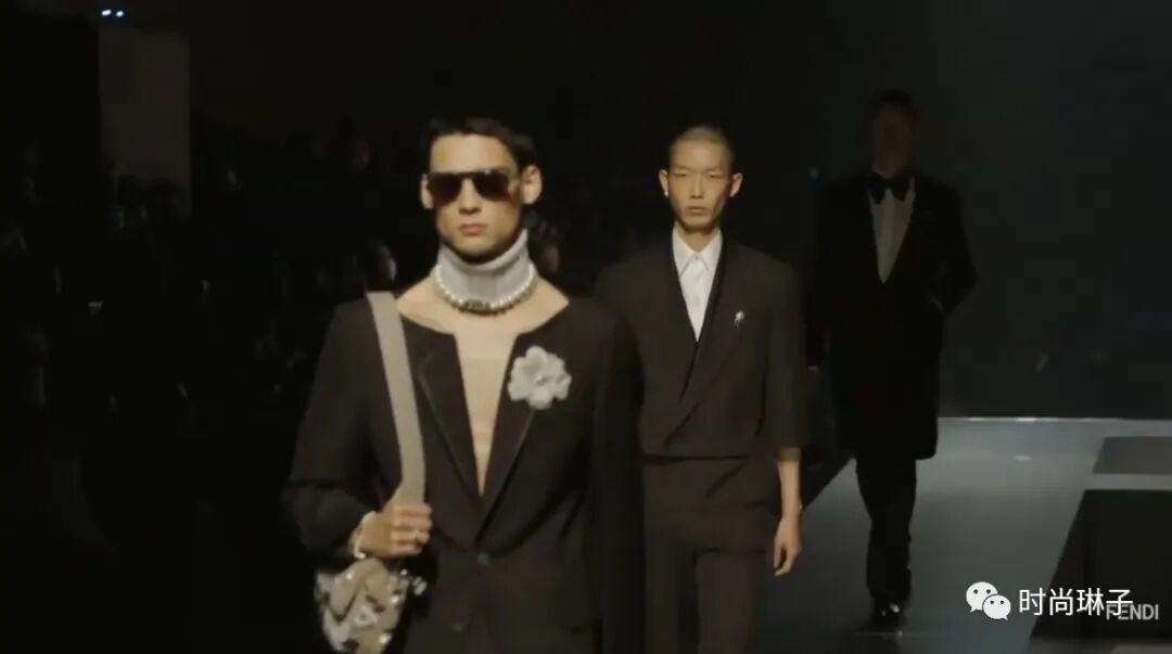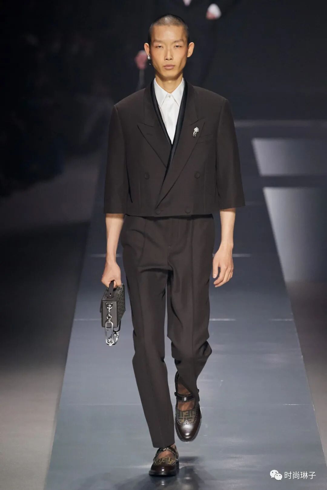 芬迪Fendi 2022 秋冬男装系列中的西装依然是经典,再设计的燕尾服为该季带来了浓墨重彩的一笔。