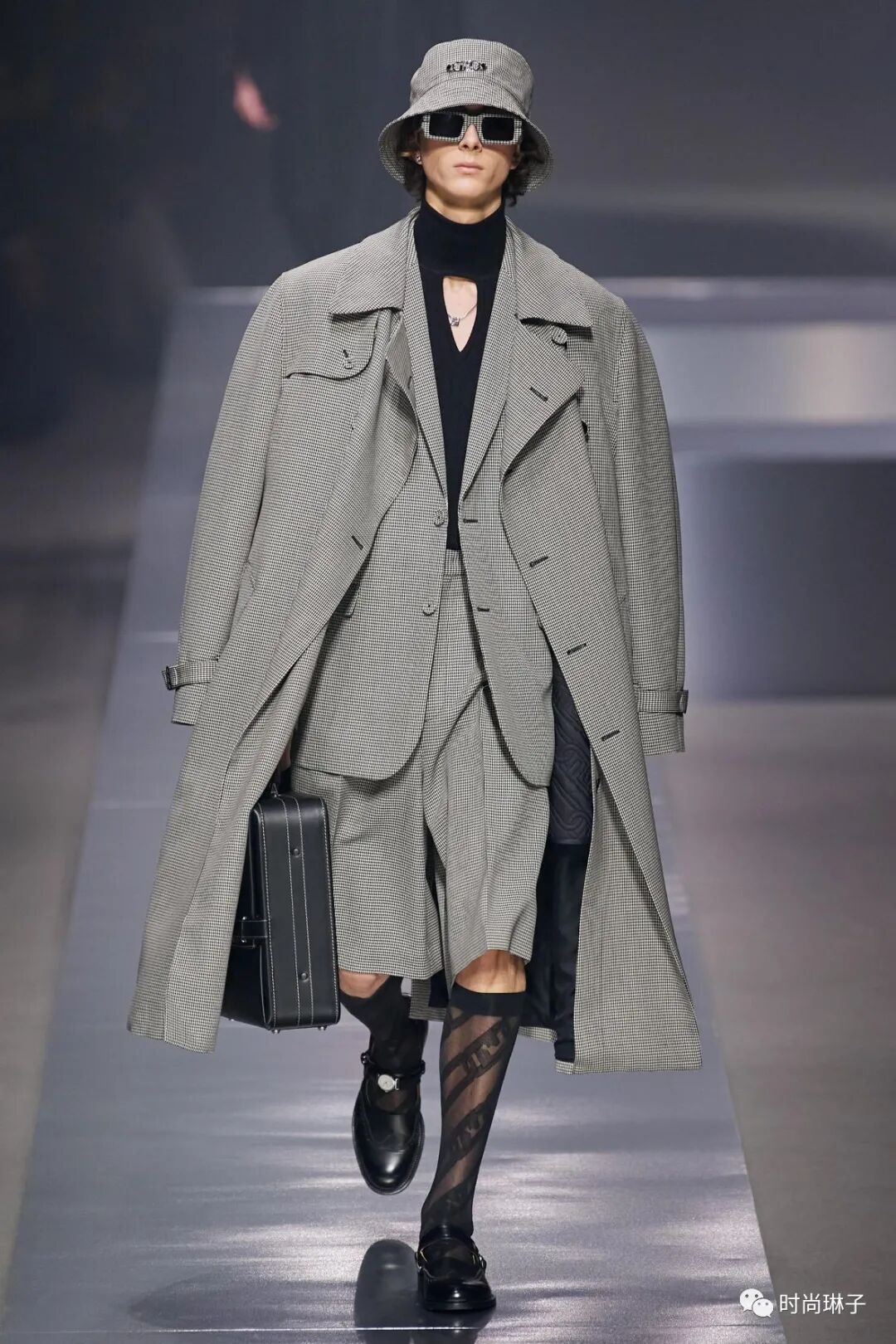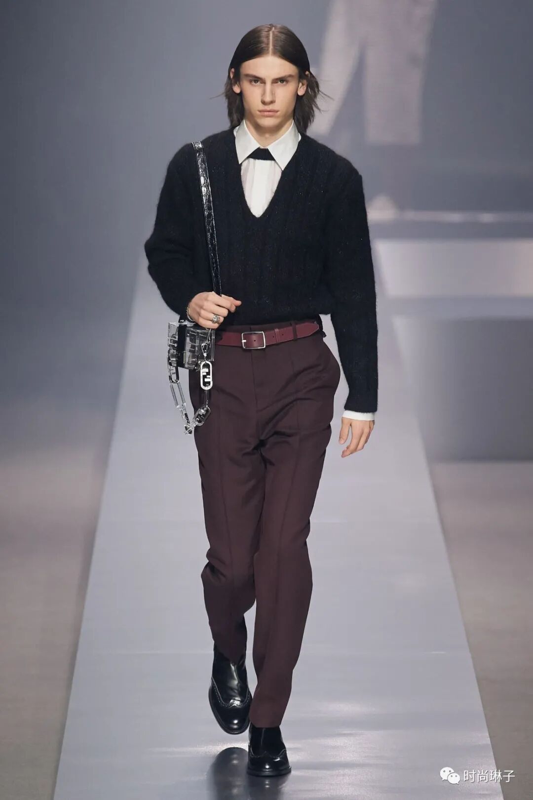 Fendi 2022 秋冬男装系列带我们穿越到过去,以 1920 年代为灵感,为 2022 年重新构造了绅士风的系列单品。