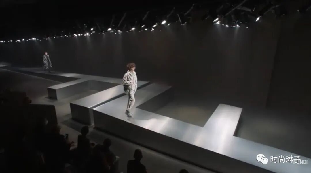 芬迪Fendi 2022 秋冬男装时装秀以品牌标志性的双F字母为秀台,严谨的裁剪和优雅的廓形,融合了经典的花花公子风以及女性元素的中性风,致敬1920年代的经济复苏和繁荣。