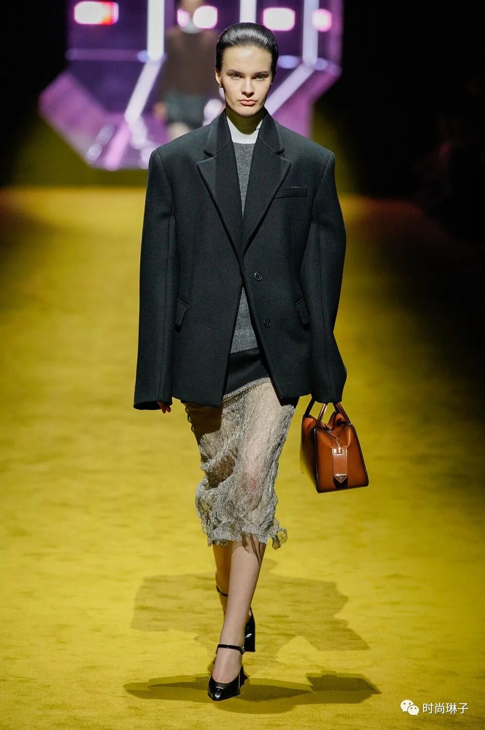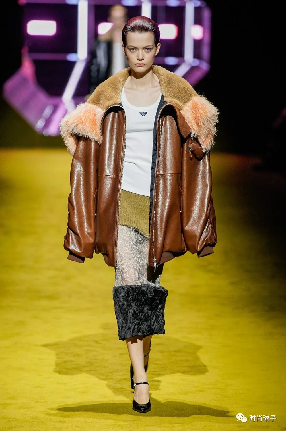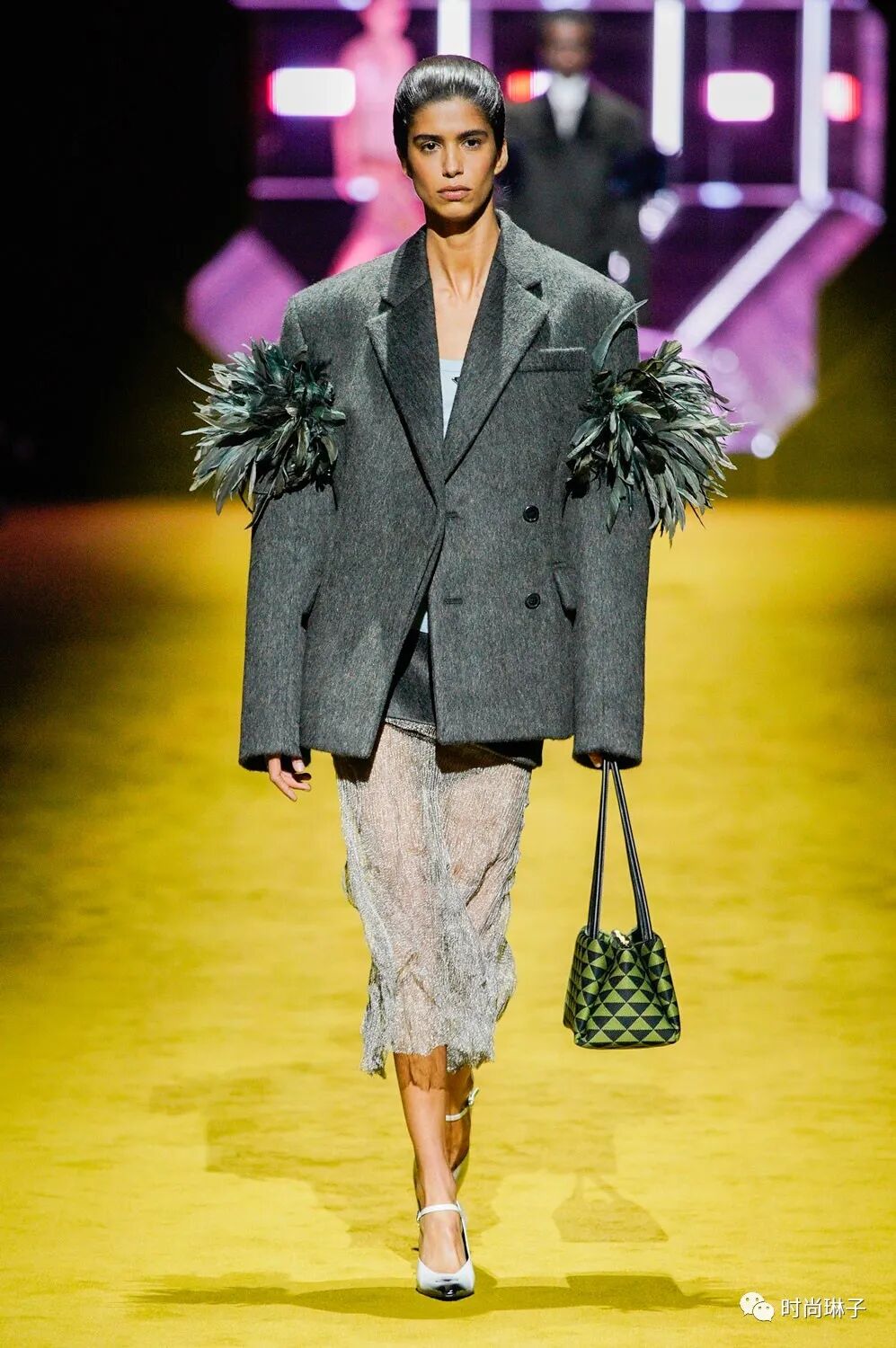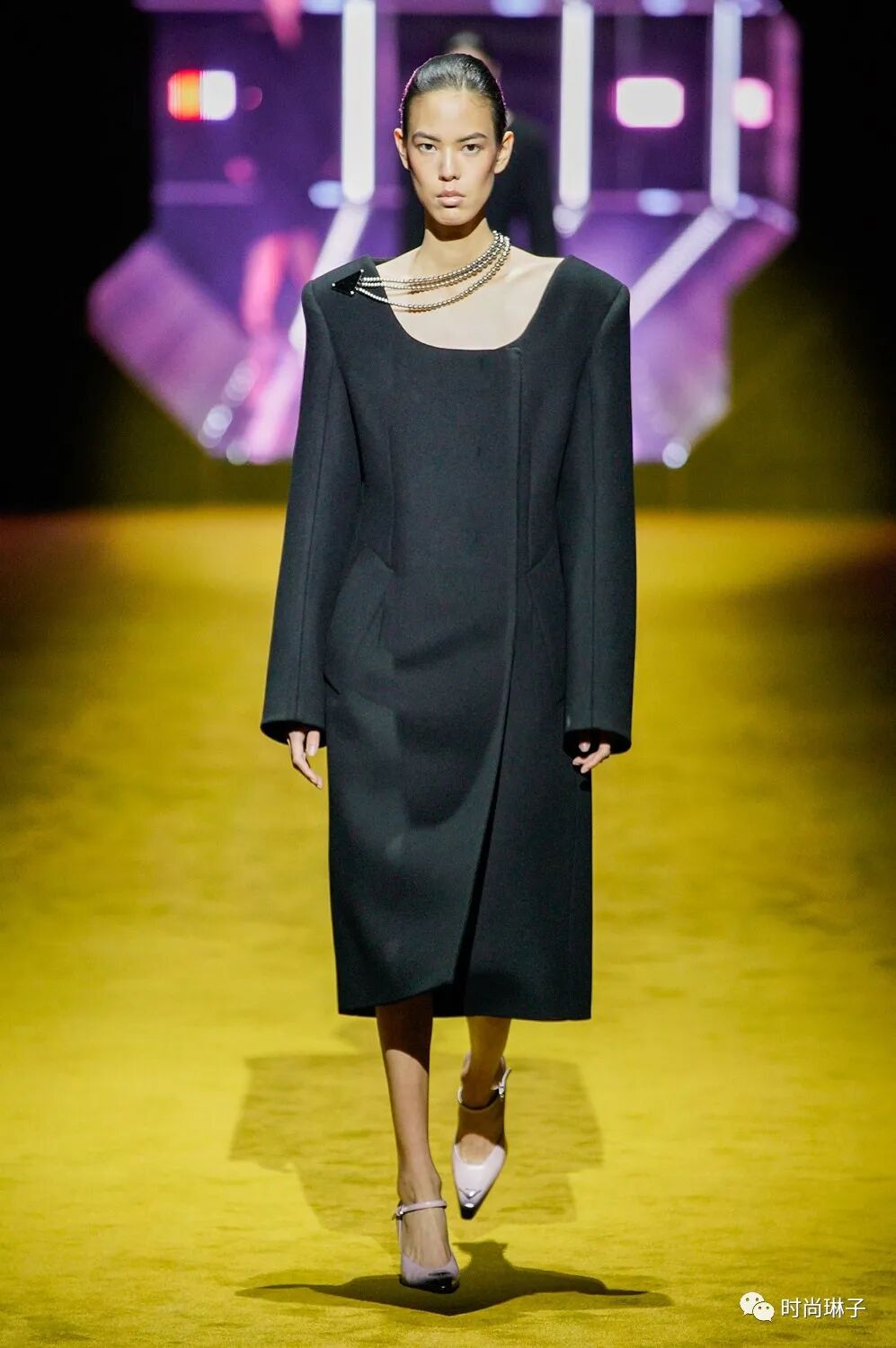 普拉达Prada 2022 秋冬女装系列和一月发布的男装有很多共通之处,如宽肩的造型以及皮草下摆和袖饰等,让我们一起来看看该季女装系列的几大亮点吧: