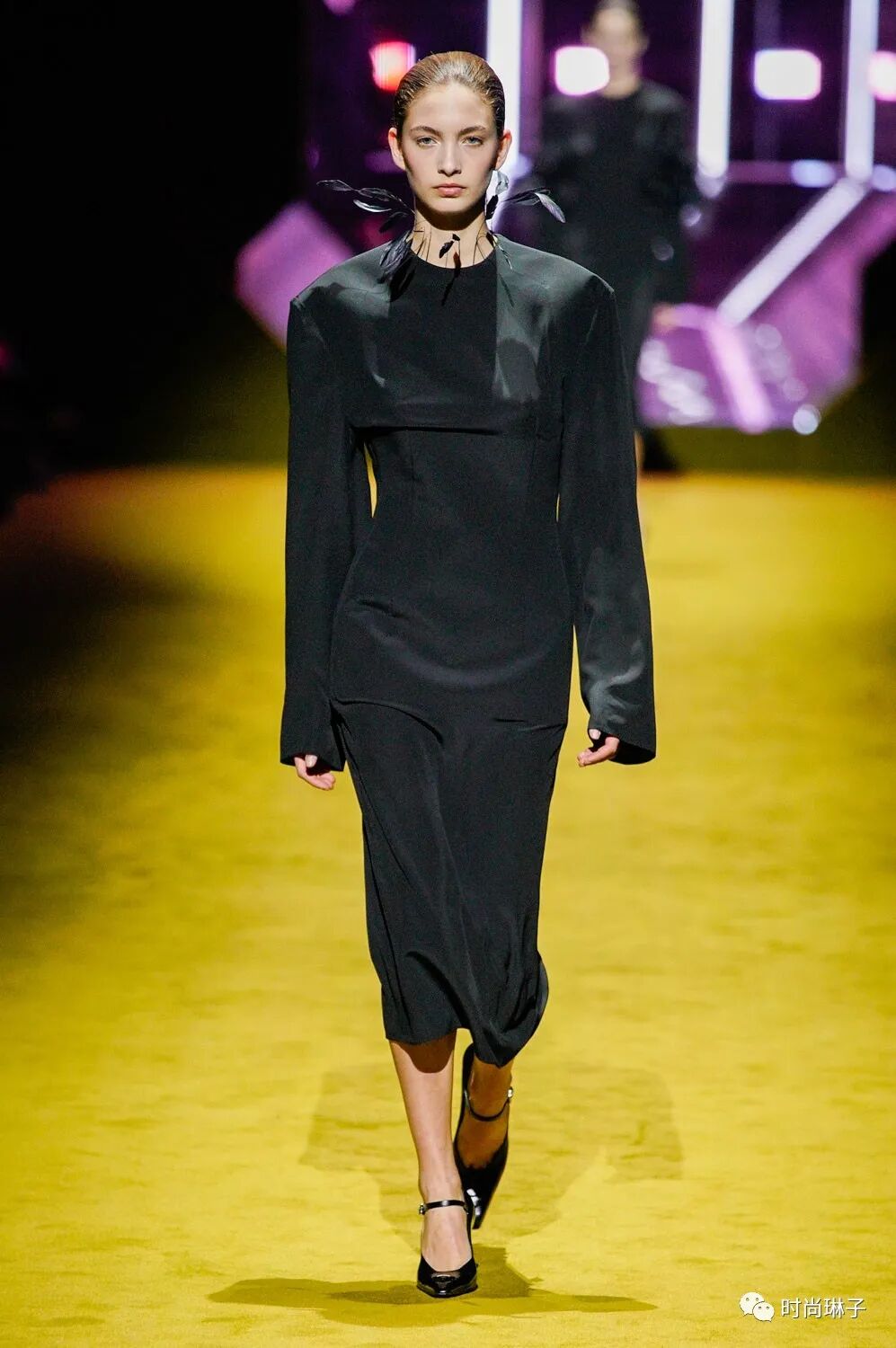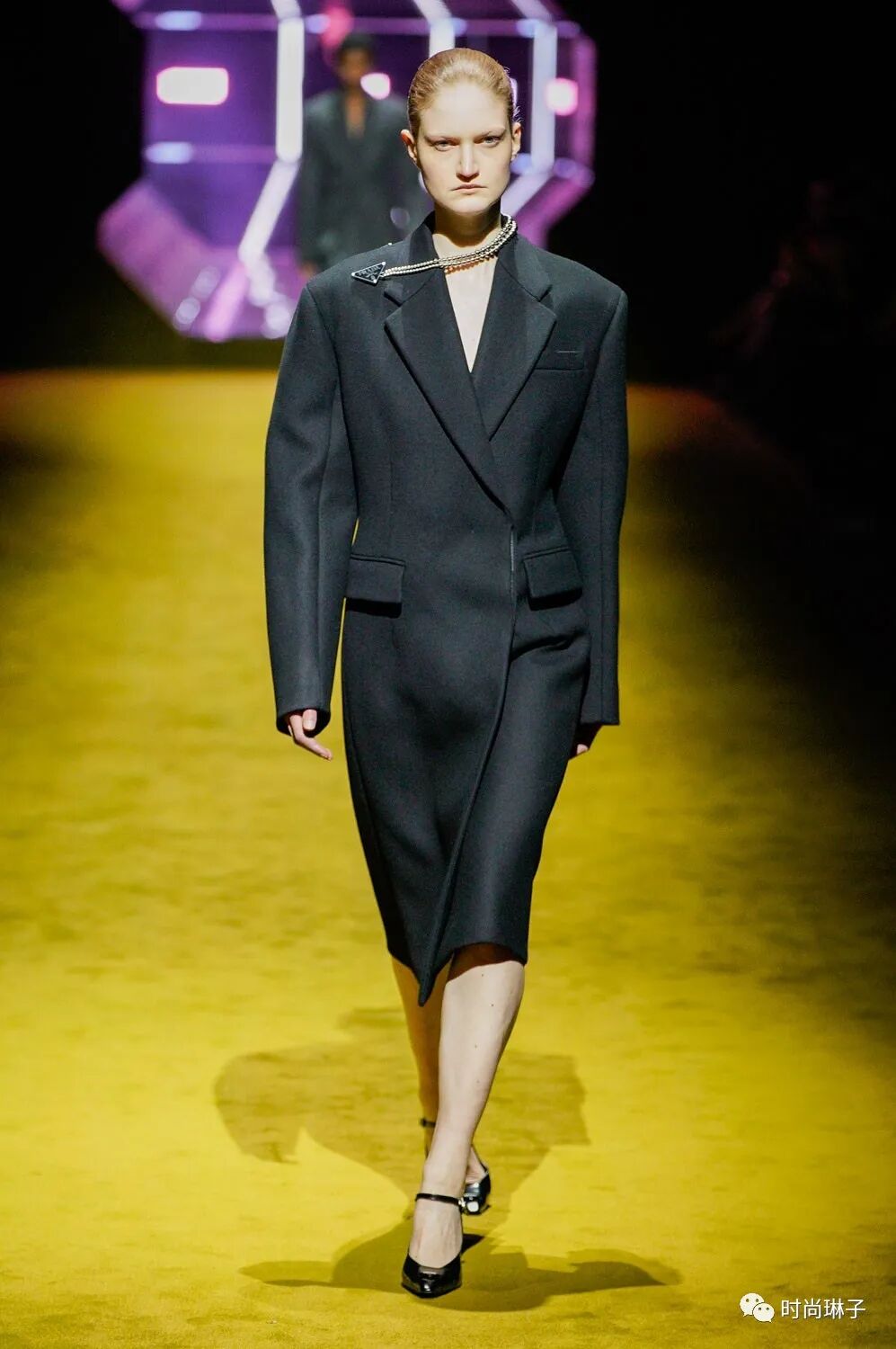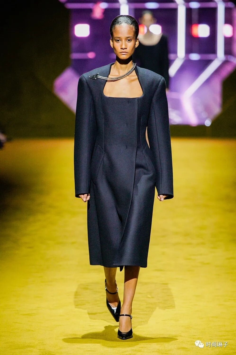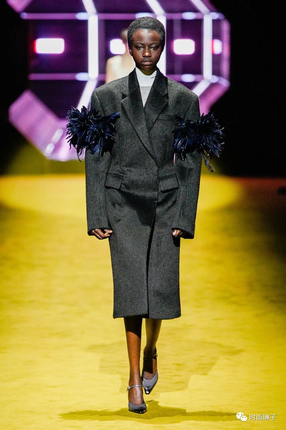 普拉达Prada 2022 秋冬女装系列和一月发布的男装有很多共通之处,如宽肩的造型以及皮草下摆和袖饰等,让我们一起来看看该季女装系列的几大亮点吧: