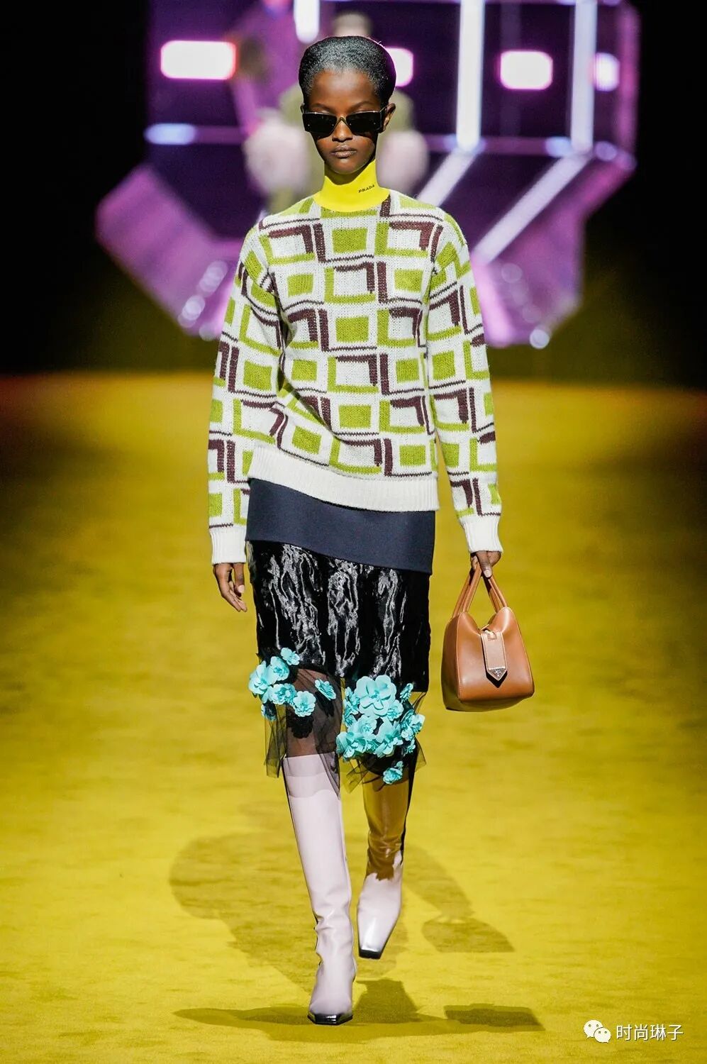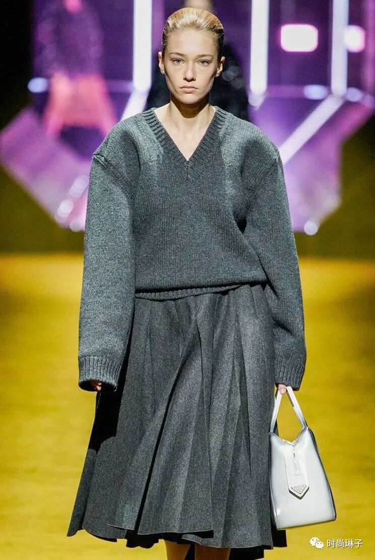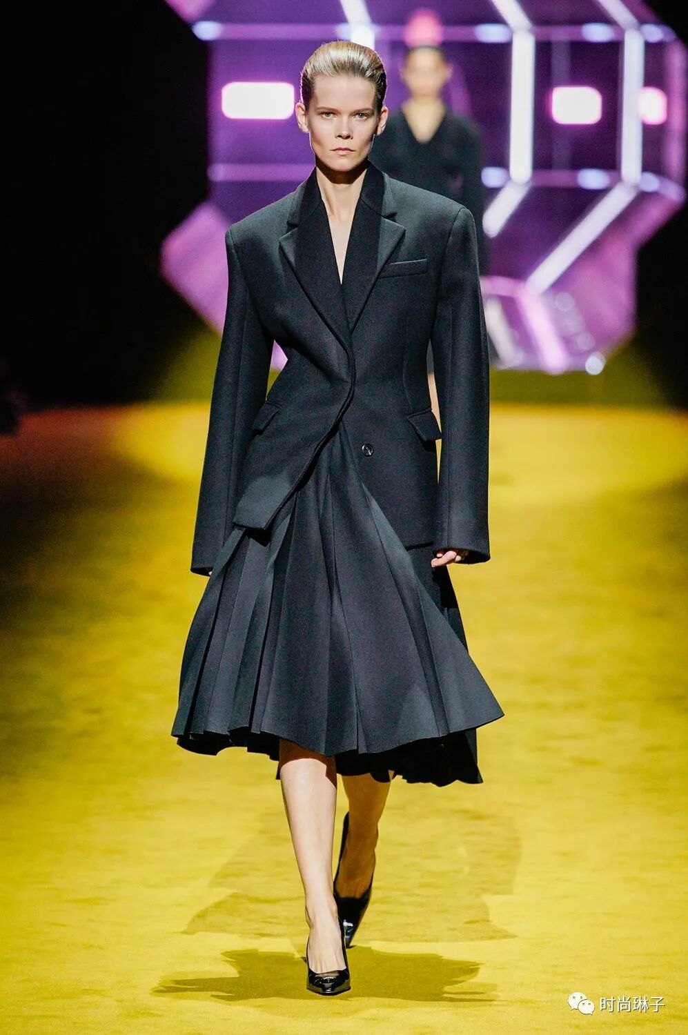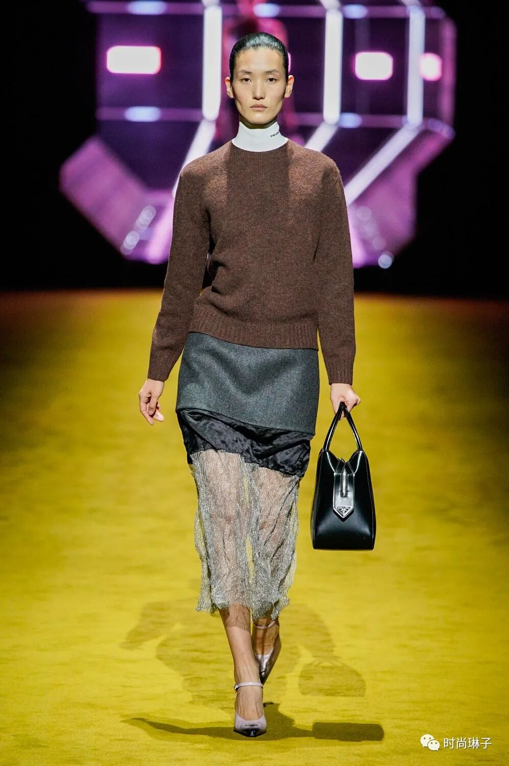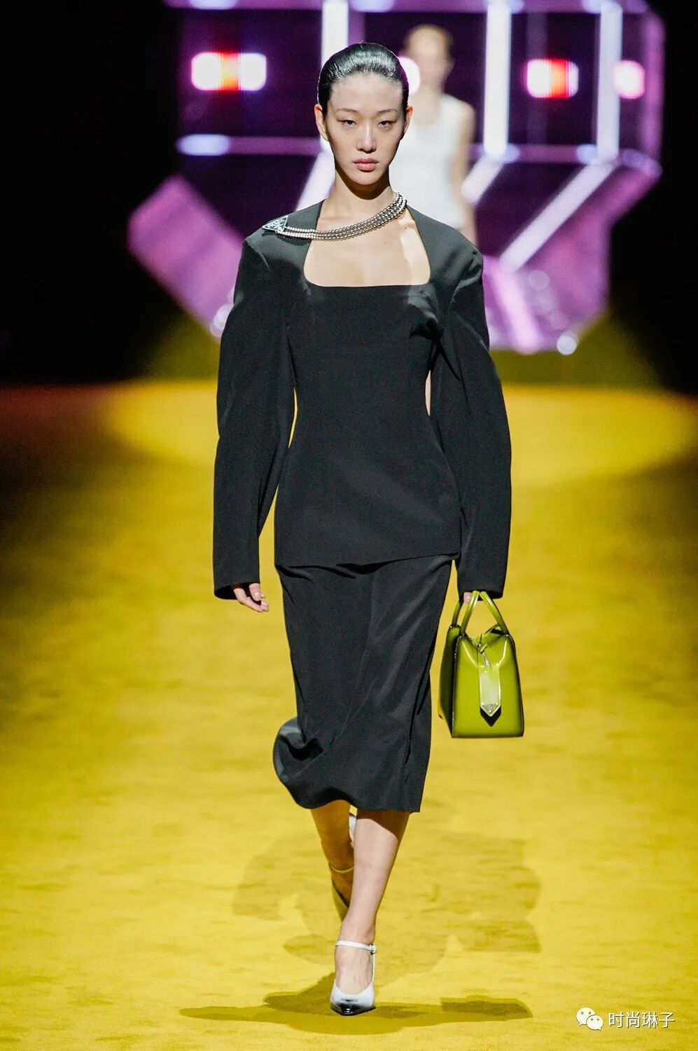 普拉达Prada 2022 秋冬女装系列和一月发布的男装有很多共通之处,如宽肩的造型以及皮草下摆和袖饰等,让我们一起来看看该季女装系列的几大亮点吧: