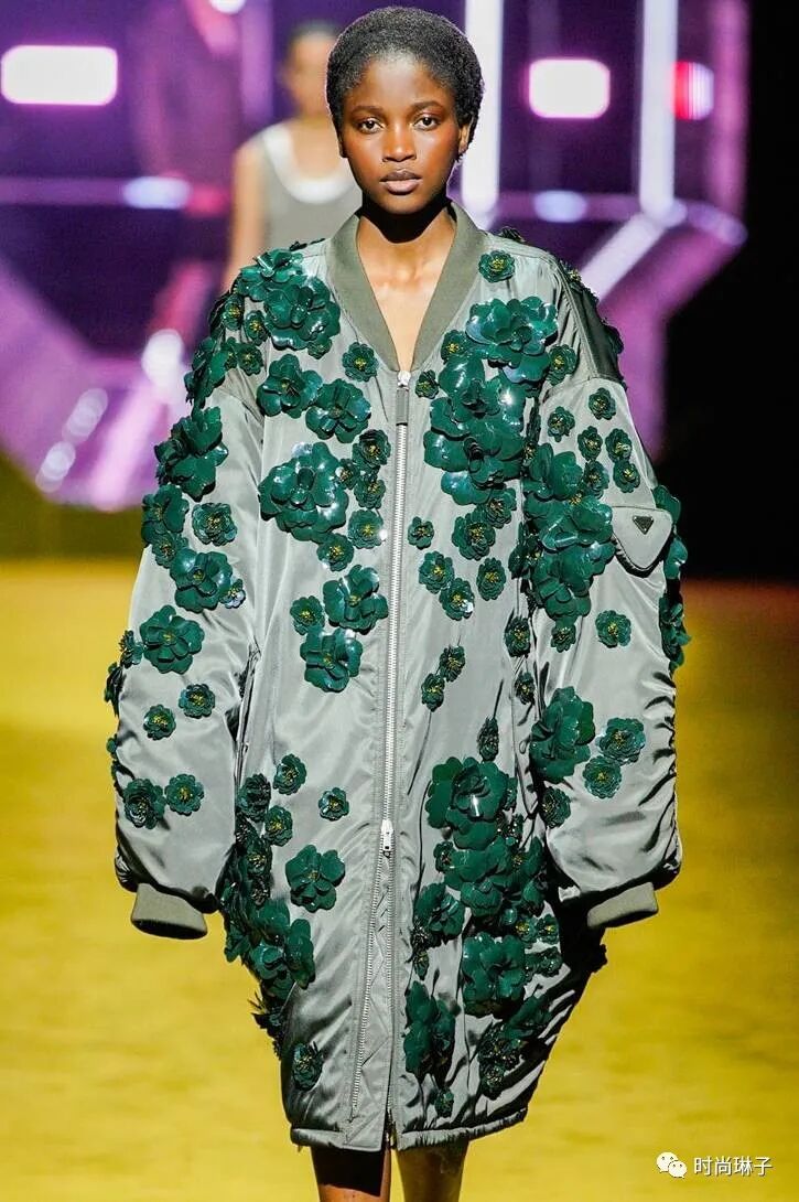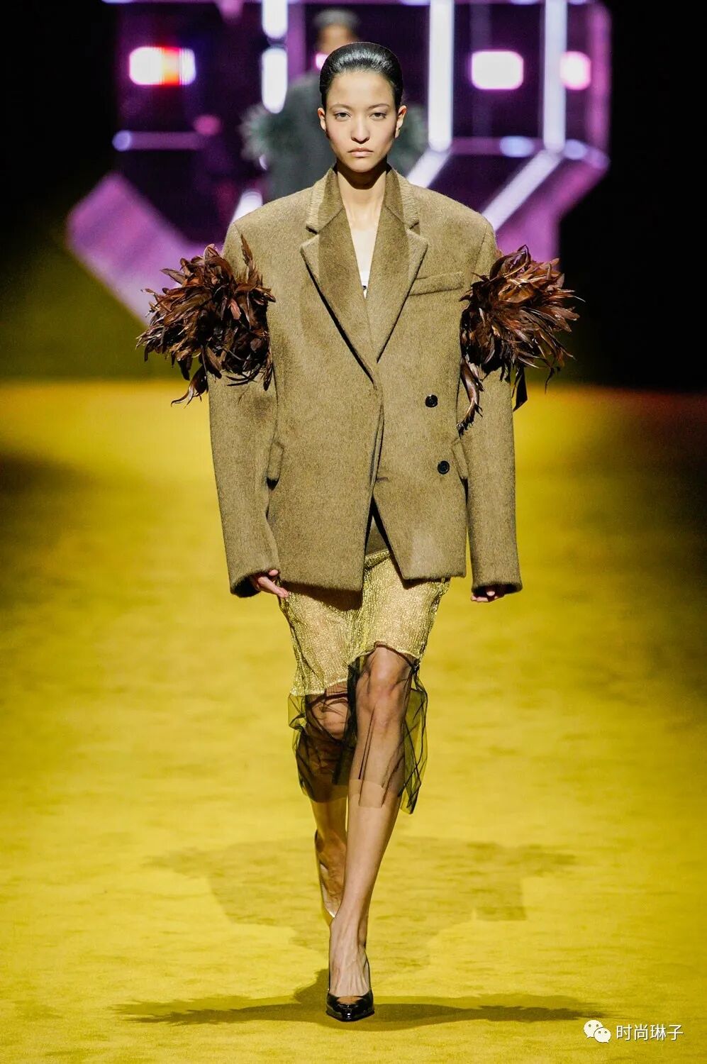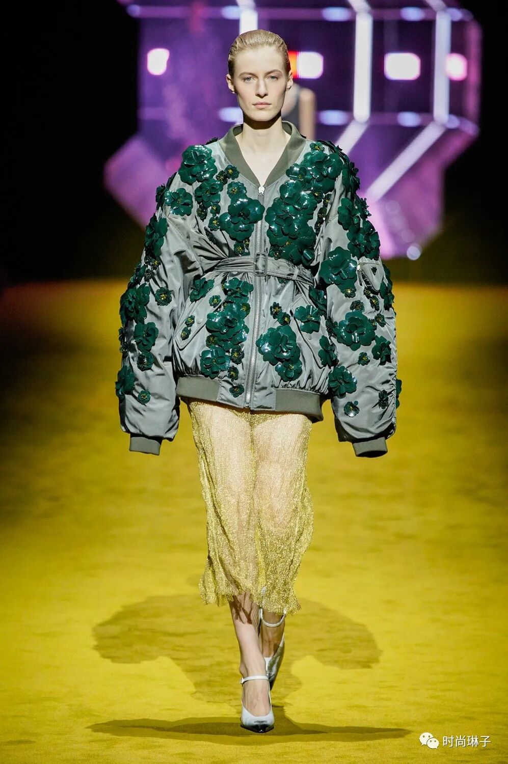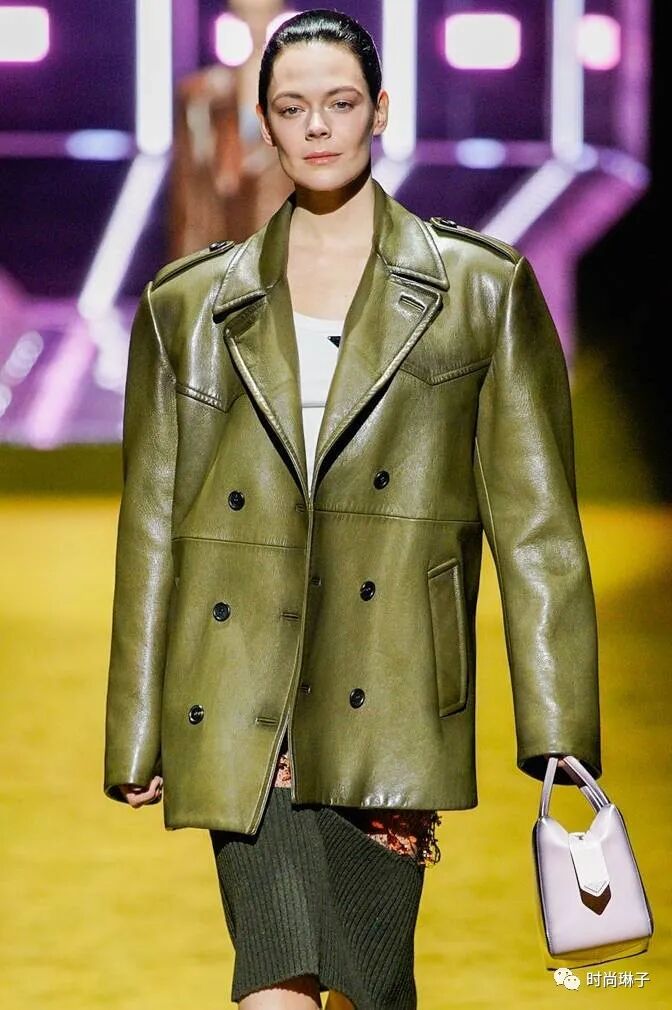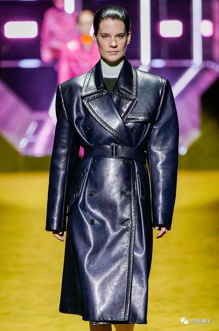 随着女权主义和无性别时尚的不断崛起,该季Prada普拉达将男装中硬朗的宽肩廓形融入女士西装外套,夹克,皮革大衣以及毛衫,凸显了坚韧的女性力量。