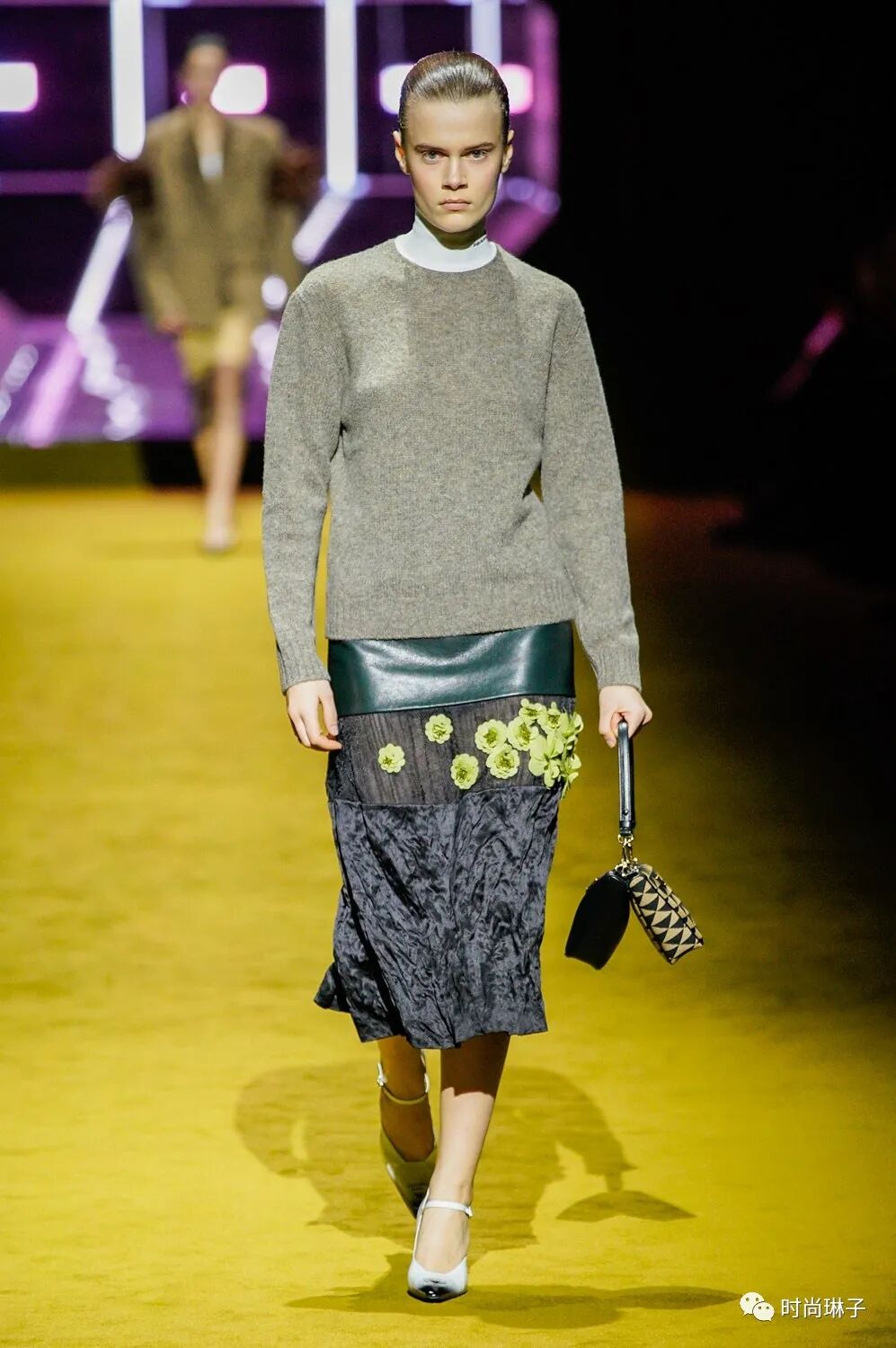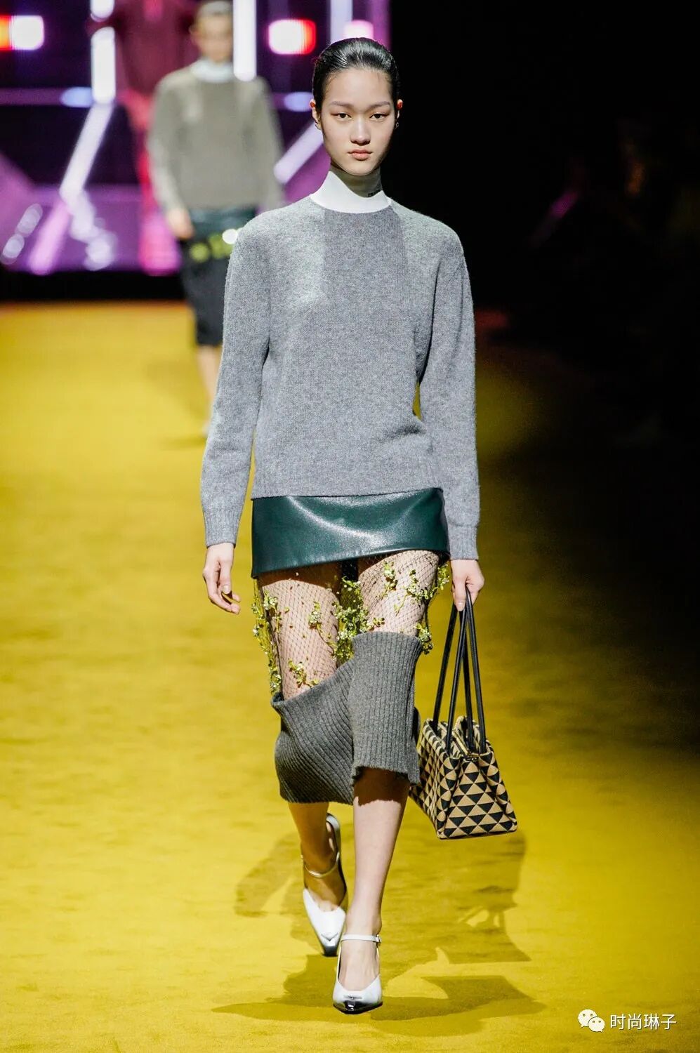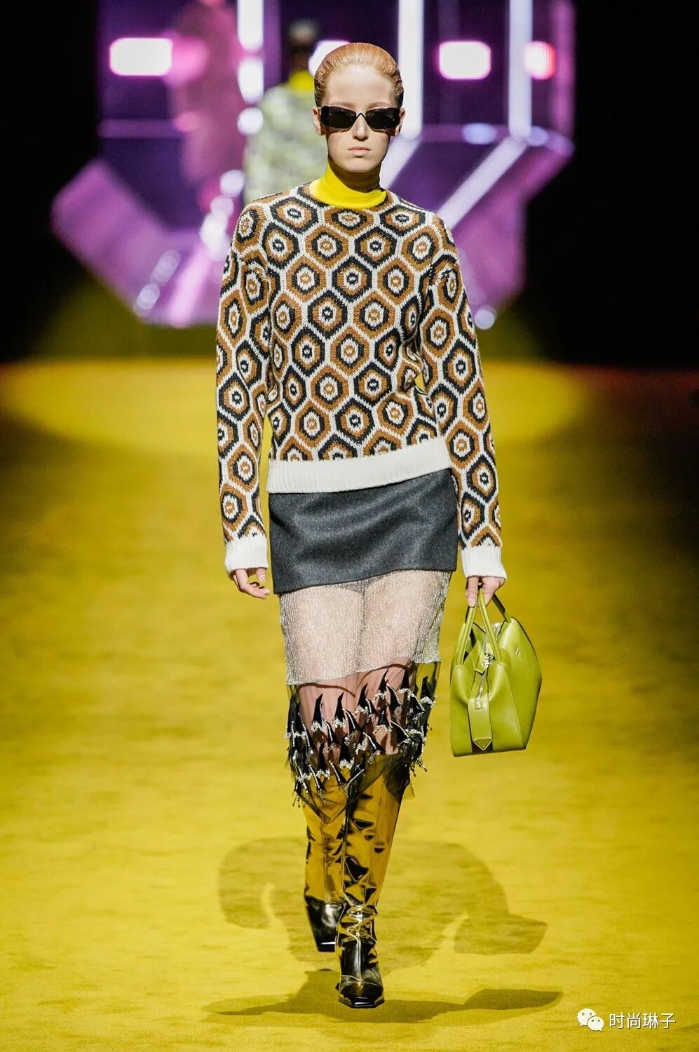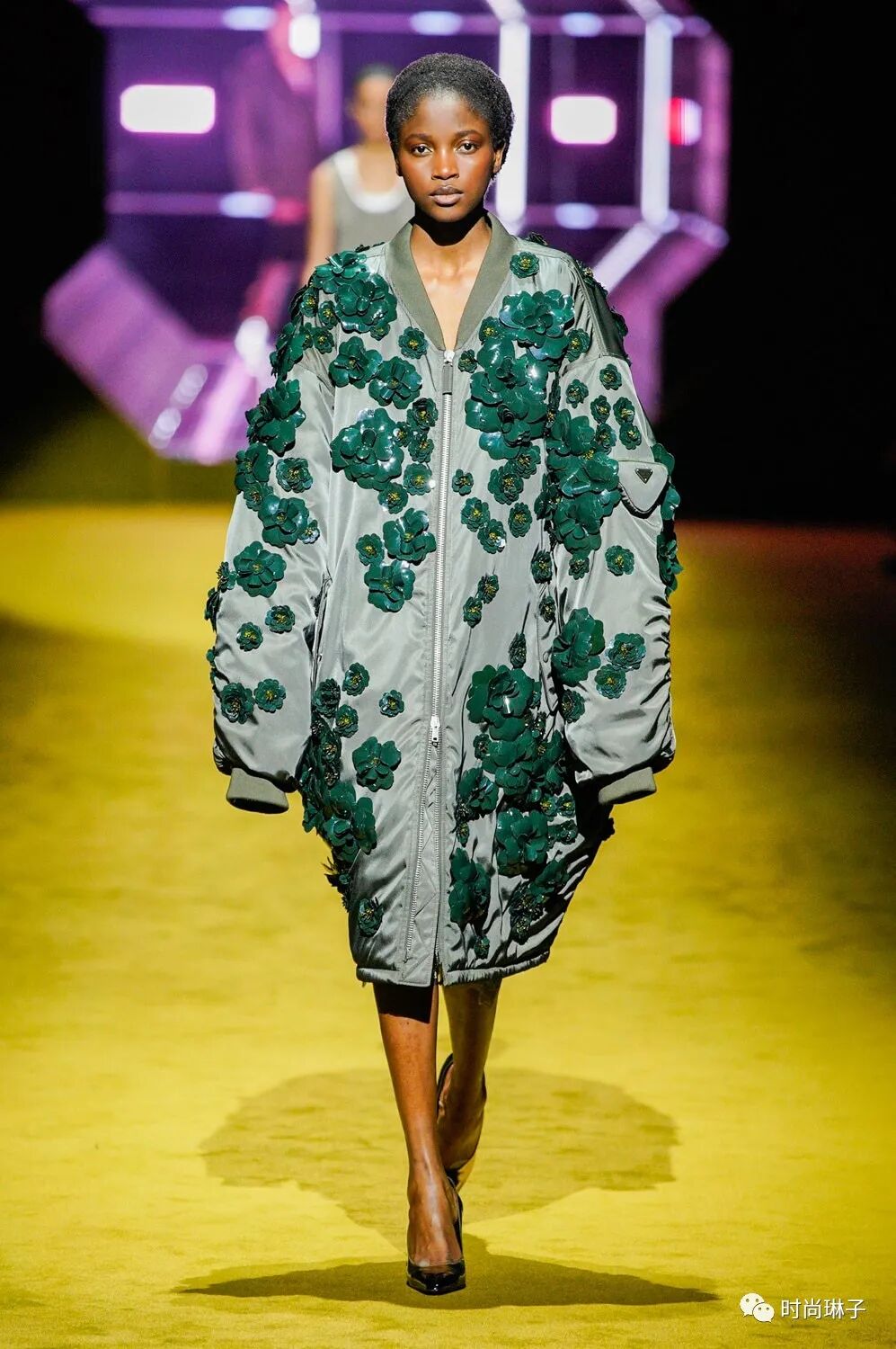 随着女权主义和无性别时尚的不断崛起,该季Prada普拉达将男装中硬朗的宽肩廓形融入女士西装外套,夹克,皮革大衣以及毛衫,凸显了坚韧的女性力量。