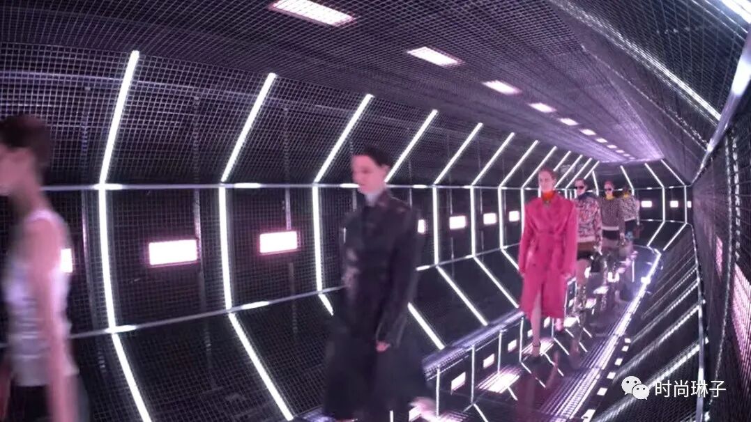 2月24日,意大利知名奢侈品牌Prada普拉达发布了2022秋冬女装系列。该季延续了一月男装秀的风格,在Prada普拉达基金会Deposito大厅举办大秀,一样的Z型灯光秀场,只是LED时空隧道由男装秀的蓝色转变为紫罗兰色,更具女性韵味。