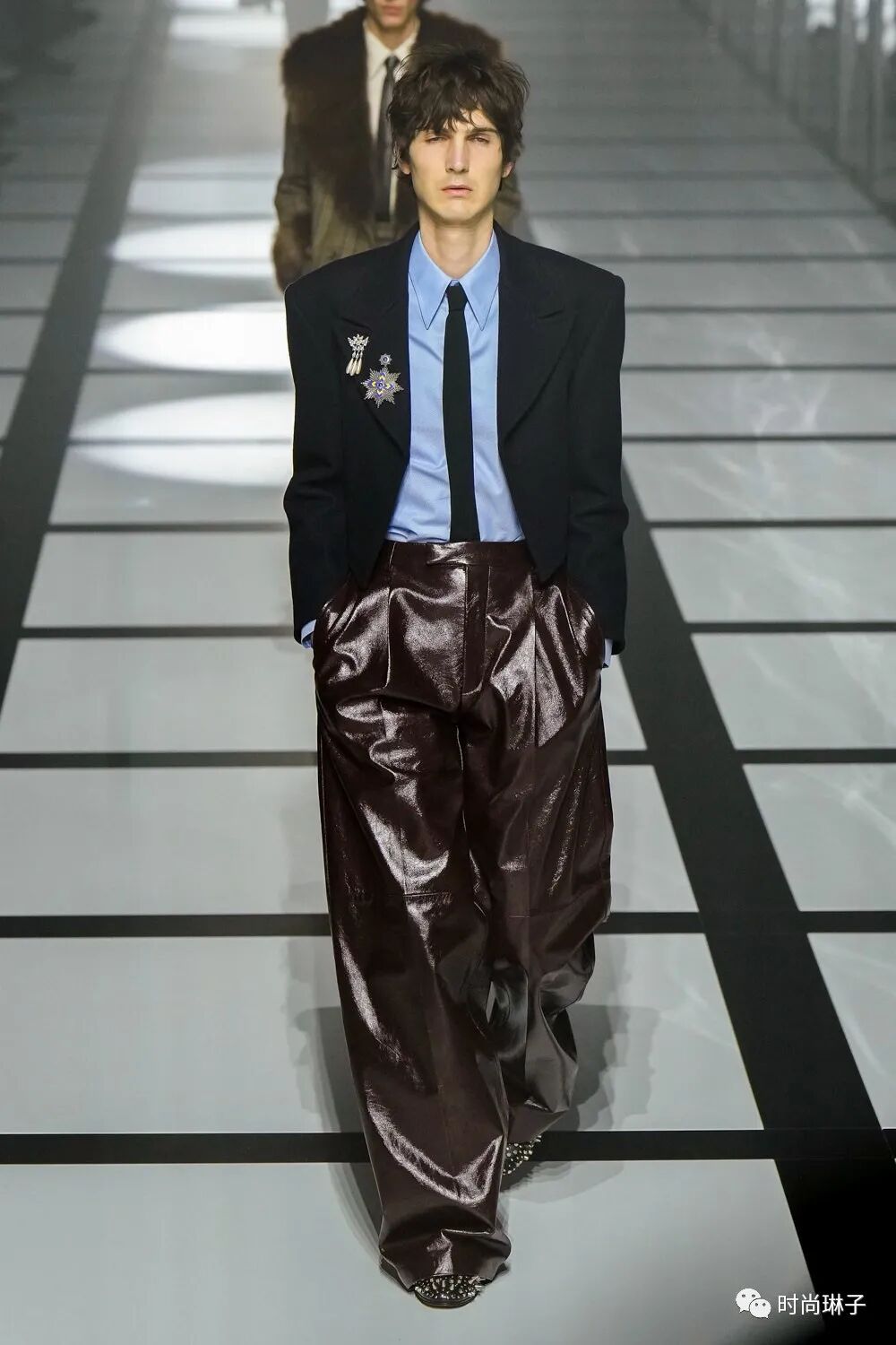 这场精致的古驰秀以魔幻的镜子为秀场背景,创意总监Alessandro Michele表示魔镜比喻时尚的魔幻力量,一种从面料表面或触感散发出来的神圣力量。它是可以通过纹理扭曲,色彩混搭,镂空叠加等方式被操控的,并改变感知的稳定性。服装就像是光学实验室,是一种可以产生迷人变化的神奇存在。