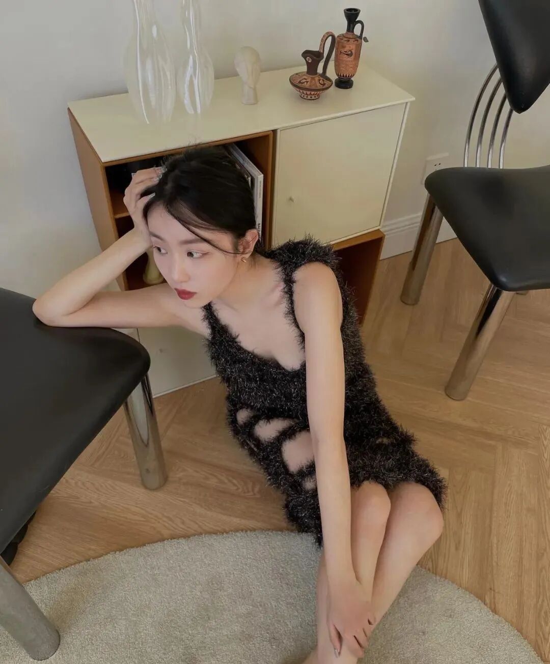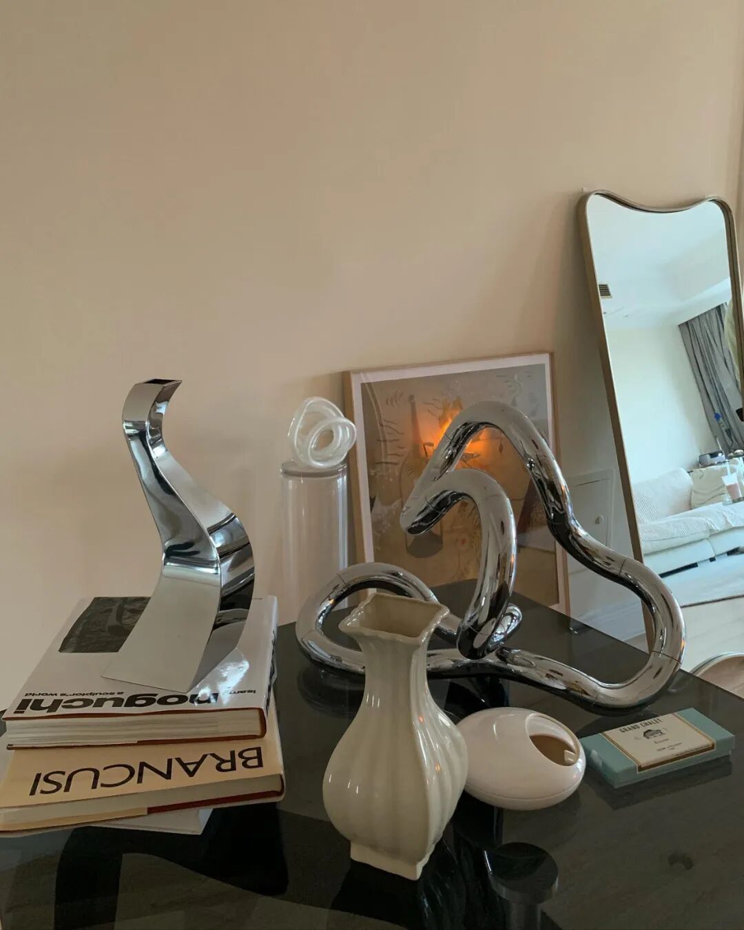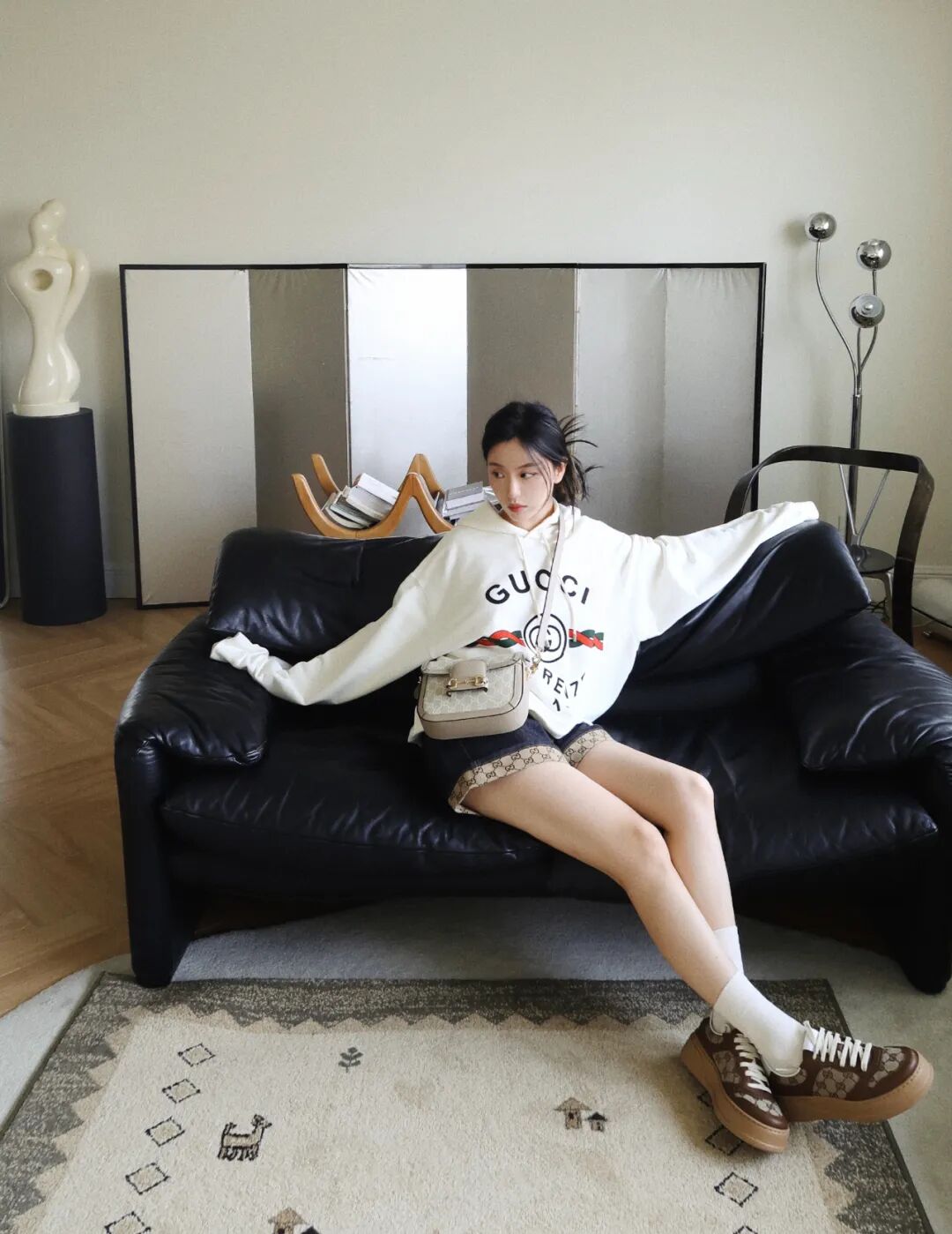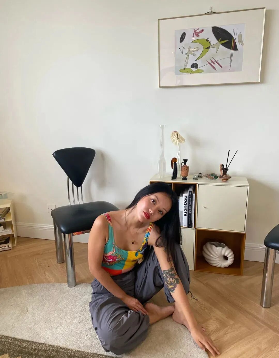 最新文章2023-11-17 MiaInTheHouse|Vol.3|双鱼座Blanche的奶油艺廊家 很久没有回来北京,很久没有见到北京的朋友们了!我想死你们啦!我们今天的主角Blanche一直是我朋友中极特别的一位。 她是斜杠青年,斜杠的多重身份包括设计师、时尚/生活方式博主、时尚策划人、艺术指导、装置艺术家,每个身份都做得有声有色。 Blanche(时尚前线版) About/ Blanche Yu @Blanche__Yu Blanche 毕业于澳洲格里菲斯大学,在澳洲学习工作9年的她已是当地小有名气的时尚博主。Blanche学习室内设计专业,将其中的理念融入到日常搭配中,不仅在澳洲的时尚博主中脱颖而出,成为澳洲红秀微信公众平台创始人之一。回国后还创立了个人品牌Whii,从事各种时尚策划工作。 个人品牌Whii出品的饰品 @whii_studio的社交账号的内容也都艺术性💯 与众多时尚博主不同的是,除了街拍和时尚单品,Blanche更多的是在讲述属于自己风格的故事,告别千篇一律的站立街拍,摒弃模式化的拍摄,将对美学的理解和对艺术的诠释打碎糅合,融入日常搭配。她化繁为简,低调又时髦的独特风格赢得了众多设计师品牌的喜爱,成为独具一格的fashion icon。 她热爱艺术,擅长绘画与设计,栋梁位于阿那亚社区的空间CAVE就是她的首个室内设计项目,设计风格与海岸的自然融为一体,纯粹质朴,优雅圆容。她也曾与栋梁发布联名服饰系列,为该联名系列在北京打造了一组橱窗设计与艺术装置。 CAVE by Dongliang 如果说家如其名,那Blanche的家再贴切不过了,奶油色的墙面营造出的温柔氛围和她的气质太融洽了,点缀的艺术品和家具虽然形态各异,但都统一在同一种审美风格下。 Blanche对每间住过的房子都很上心,她每次搬家都会重铺地板、粉刷墙面,让每间房子从入住的那天起就写上了她的名字。 能在自家拍出这么有艺术感的出发图的博主,我一个手可能都数得出来? 中古家具这两年的风有多大,水就有多深,这些带着浓郁space age时期圆润、自由的线条设计,就像胶片照片一样有它迷人的气质。 曲线造型的电视柜有着中古的外形,但其实是Blanche设计找人定制的。 丰富的曲线充满着Blanche的家,总归让人不自觉地把这种形式美和巴塞罗那的建筑、高迪的作品联系起来,古怪、自由、迷人且百看不腻。 曲线、米白的米拉之家始终是曲线设计史上的标志性作品。就像说烤鸭不能不说全聚德,说曲线美不能不说米拉之家。 客厅顶上的飞船吊灯是来自意大利品牌Luceplan的Titania,充满space age时期色彩的科技感造型,通过改变插片可以任意调整照明,在冷暖两种灯光的组合下,更显得科幻感十足。 像不像当代艺术品?或者像不像异形? 书房里的办公桌一眼望去就心动,以为是哪个仓库里淘来的中古尖货,结果却得知是Blanche自己设计定制的,圆形镂空的扁方形桌腿既可以是包豪斯的几何美,也能是新中式的禅意或者北欧的极简风格。 桌面的灯像海浪、也像绸缎的褶皱,也像记忆里神话电视剧里龙宫的精巧摆件。照明对这样一件art deco风格的物件来说,也只是最微不足道的作用了,点亮起来的氛围感让小小一间书房也变得足够特别。 两款灯都来自设计师Georgia Jacob,两款褶皱不同,橙色款比较多层次是“Corolla”,绿色款单层是“Ophelie”,妥妥当下中古圈的顶流灯之一。 日本东洋回流风格的金箔/银箔屏风和奶油色系的墙面,原木色的地板形成了极具禅意、留白感的画面。 即便使用不多的厨房区域也都是充满她的个人色彩,每一只茶盏、酒杯都像艺术品,各有各的特色。当然很多人会追求餐具的统一、和谐,但这样“奇形怪状”的杯具收藏不也是和谐且有趣吗? 如今国内涌现出了大量的有审美品味的设计师,家具领域也是,像是SoftServe、Tavn…都为时髦家居生活提供了「解决对策」。 一对从洛杉矶中古店淘来,漂洋过海而来的孟菲斯风格靠背椅成了整间屋子里的“力量感担当”,和她自己设计的那一组落地烟灰缸相映成趣。 包括陈列展示的Lubin Idole香水瓶也都有着中古且极富雕塑感的外形(花瓶前方的那个棕色瓶),Idole比较广泛接受的翻译为“探险日记”,一只奇妙的糅合木质、柔软皮革、藏红花的异域风味的香水,清苦和蜜感、温暖和清冷、克制和张扬的对比在三调变化中尤为突出和明显。 Blanche在家的角角落落安插了不少自己设计的作品,还有像两个紧紧相拥的小人的蜡烛,形成一种不管怎么转都有同样画面的莫比乌斯环的形态。 可温柔与个性,本就不冲突,Blanche的家和她本人都给人一种温柔可亲的感觉,泛着金属冷光质感的手碟在这个家里就像UFO一样独特另类,坚硬的外壳敲击之下却也能奏出轻巧灵动的音符。 包括从家里摆放的各种非洲风格、部落风情的摆件到她自己创作的画作,充满律动的画面,丰富的配色运用,都是体现了她藏在温柔下的个性。 除了澳洲的粉色湖泊能成为她的灵感,日本动漫《太空丹迪》的热闹景象也能启发她对「万物生长」的思考。 当然,同为家居香氛爱好者,让家里充满香气都是必不可少的啦!而对于Blanche来说,香的作用不止这么简单,更是一种净化磁场、疗愈心灵的仪式。 --Q&A-- Mia: 每天回到家的第一件事是什么? Blanche: 坐在沙发上点个香什么的,我平时自己在家很怕特别安静的空间,一般都会先放个音乐。 Mia: 时尚品位和家居品位有没有互相影响? Blanche: 我觉得这两个品味其实是会向着同一个方向发展的,我喜欢穿的很简单的时候,就喜