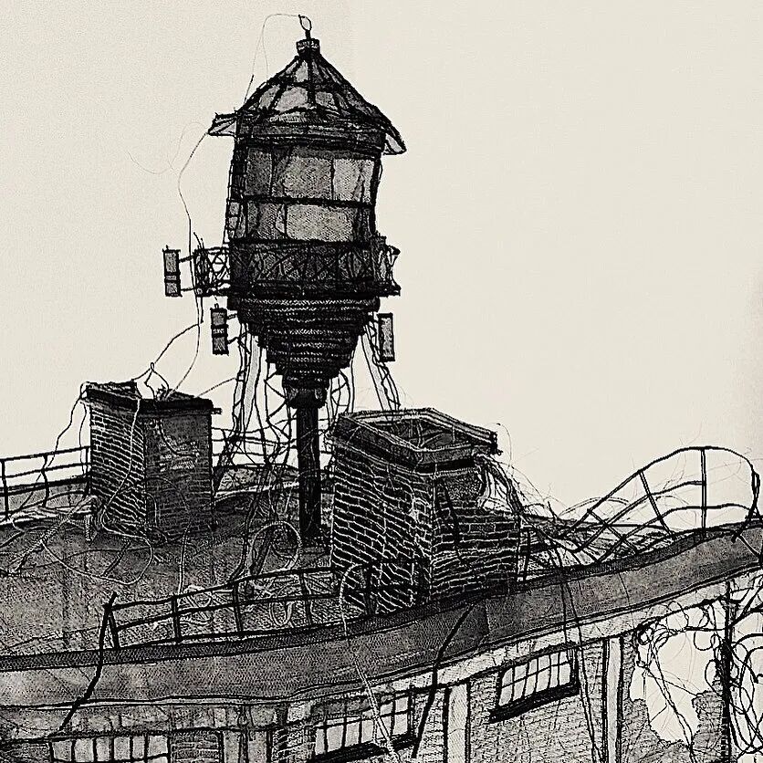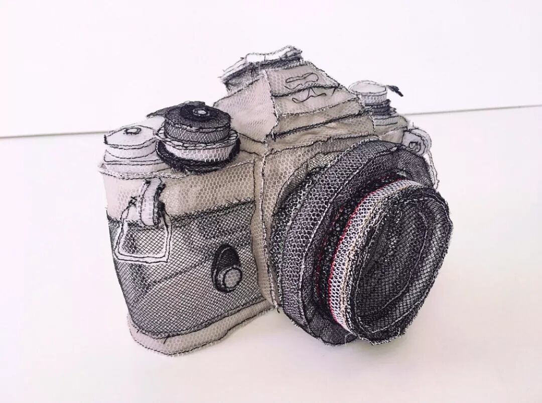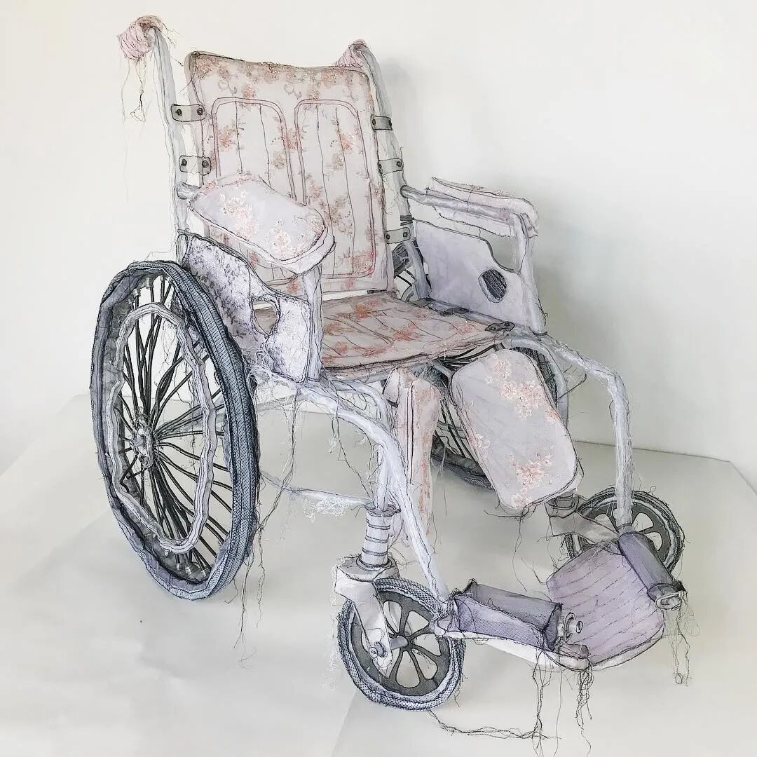 Jannick Deslauriers 可以算是“十级裁缝”,她喜欢用深色线勾勒出边缘来模仿素描的铅笔的轮廓,她的装置作品融合了绘画和雕塑的艺术手法,给人们带来一种以假乱真的速写感