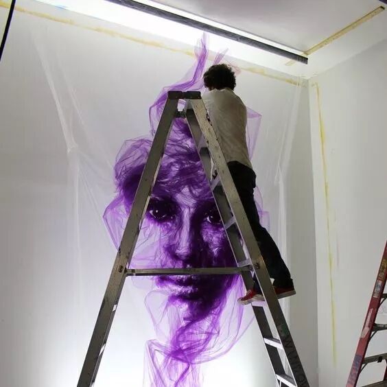 Benjamin来自英国伦敦,曾在中央圣马丁艺术学院学习时装设计。不过,他并没有成为时装设计师,而是专注于面料、空间理论和加工技术,从而创作起了独具特色的薄纱人物肖像。他说:“我并不希望给自己太多的局限性,无论是时装设计,还是眼下的艺术工作,这都让我觉得充满挑战。”