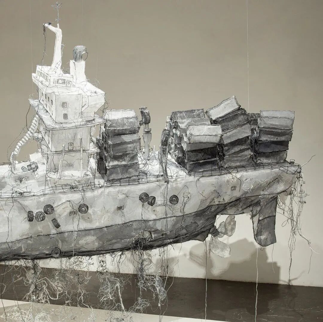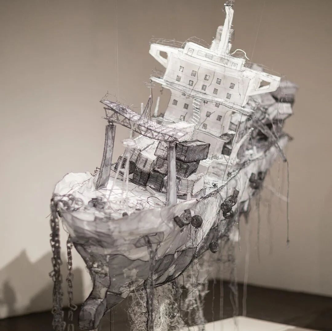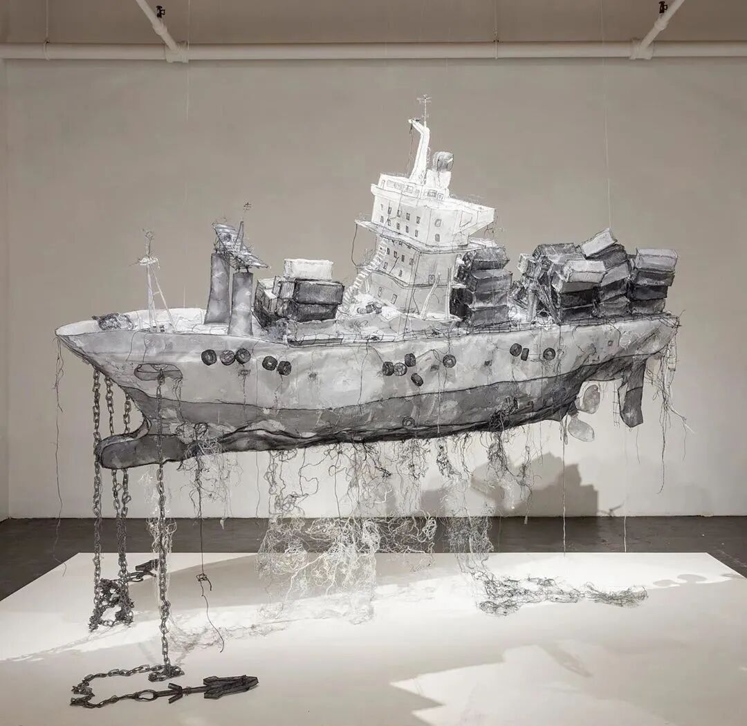 破碎生锈的钢琴、随空漂浮的船只、宛如经历灾难现场的幽灵废车、半透明军用坦克、疑似爆炸后的电子设备,从工业设备到建筑或是家具,生活中常见的一切都能成为她的创作主题