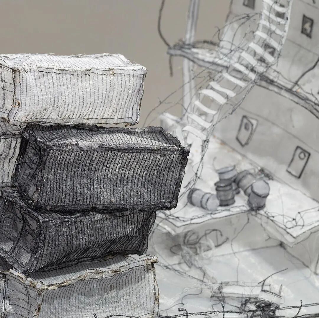 面料改造届的暴力美学!她用纤细的薄纱毛线和丝绸,织造”破碎、绝望和死亡”的灾难现场…