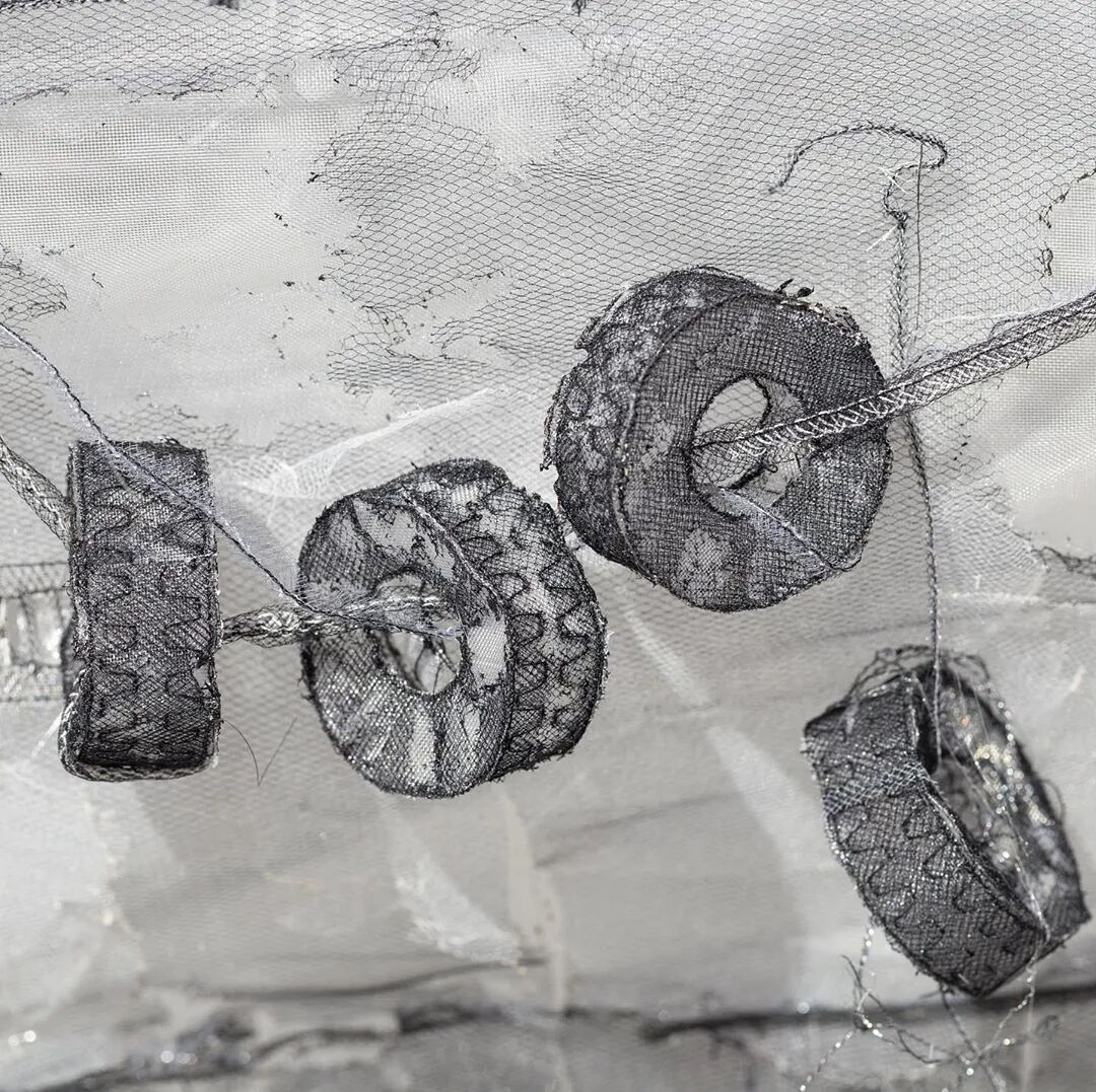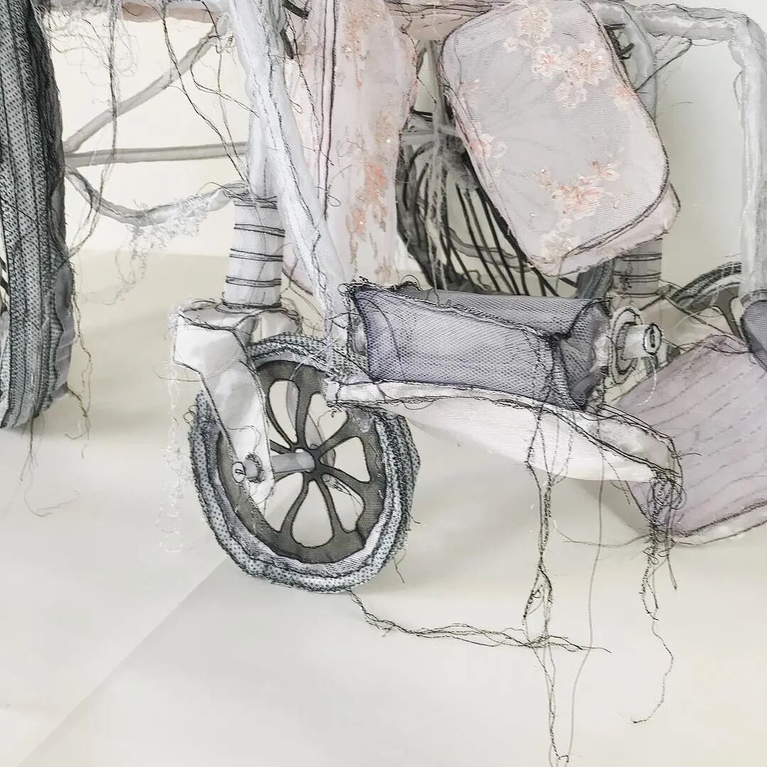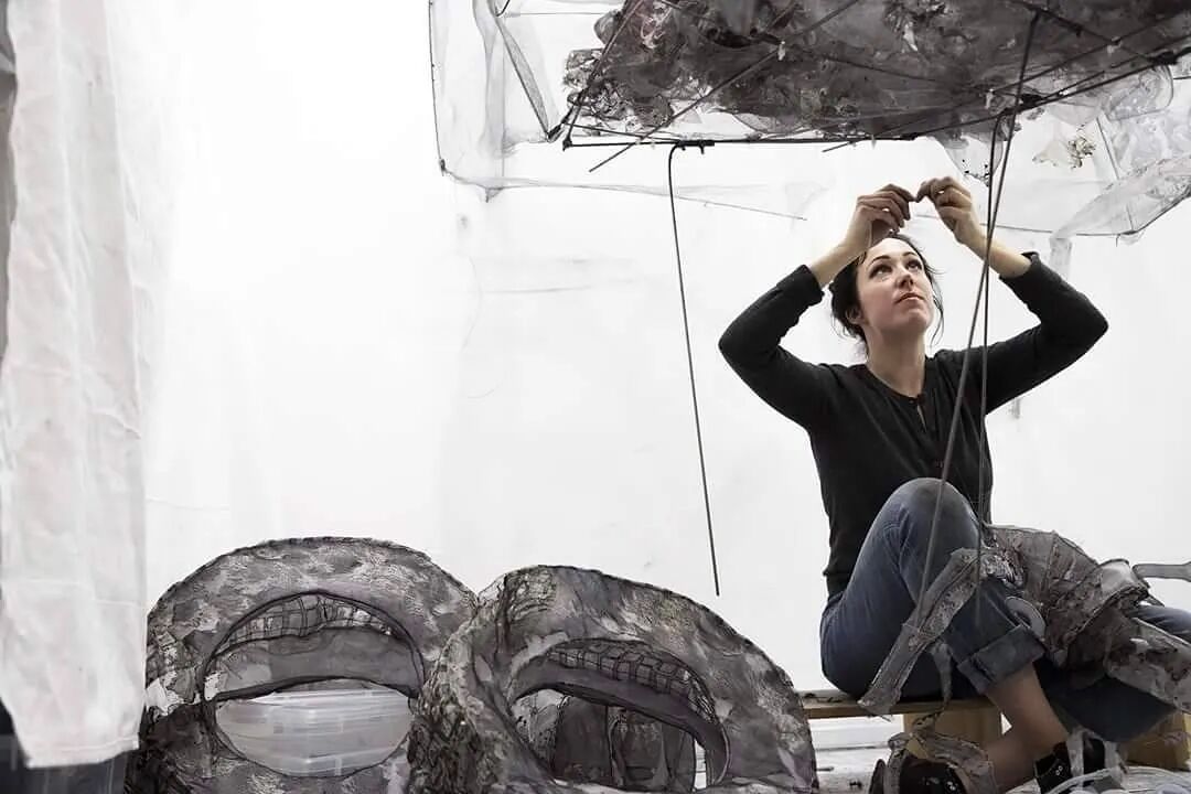 Jannick Deslauriers是一位来自加拿大蒙特利尔的纺织品艺术家,她通过对纺织品特性的深入研究,运用如蕾丝、薄纱、丝绸等轻薄的半透明织物,结合细铁丝、铝网等金属来进行梦幻而诗意的创作