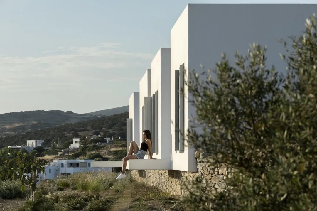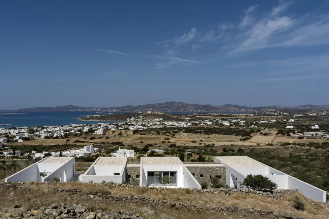 项目地块位于帕罗斯岛南部。建筑的长侧面向西南方,俯瞰Aliki和Antiparos海湾,可称之为面朝大海。建筑坐落在山坡上,与地势地形相融合。