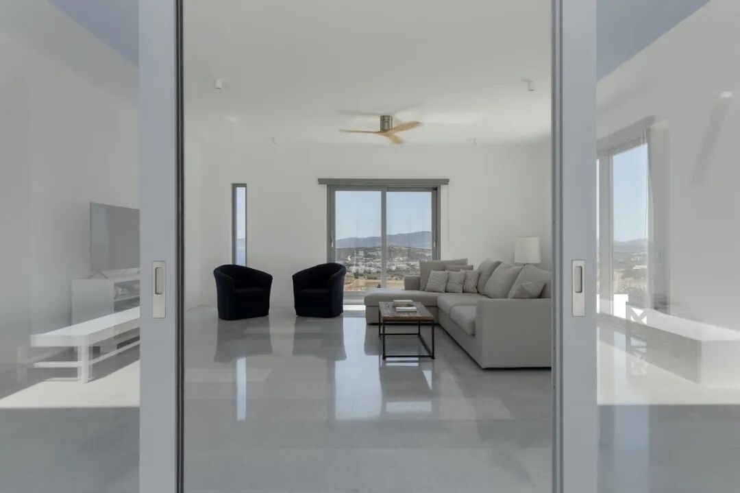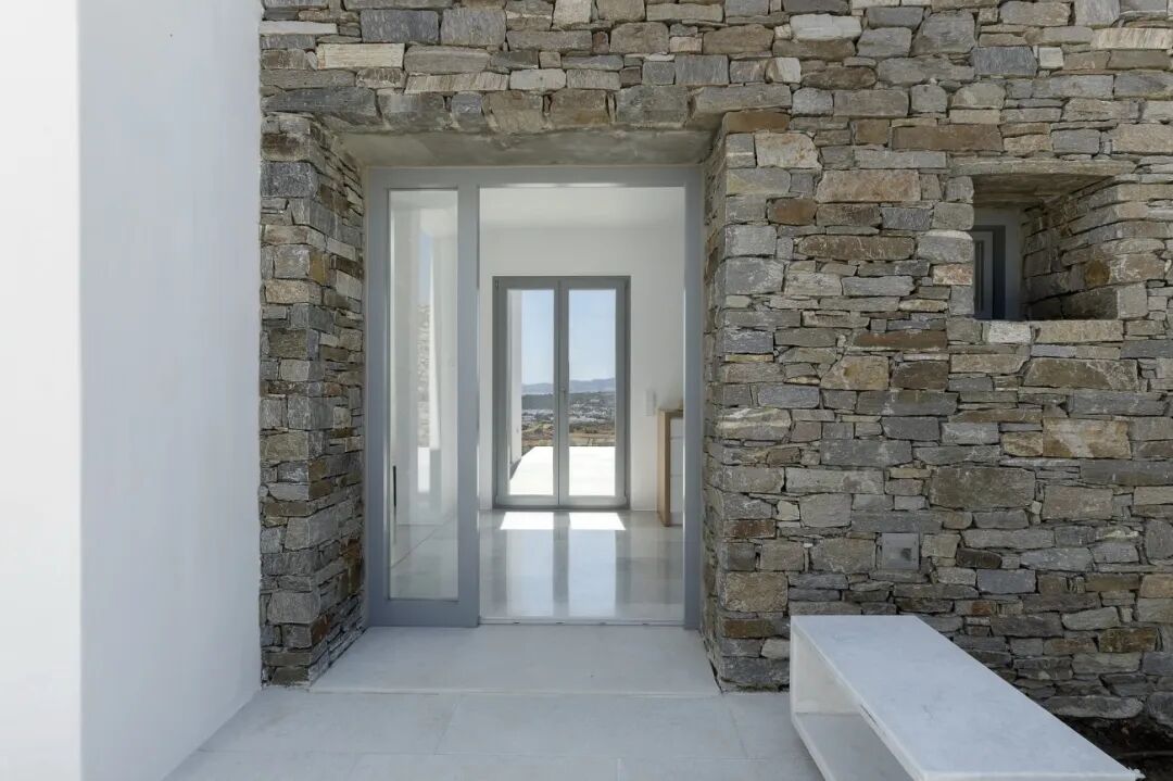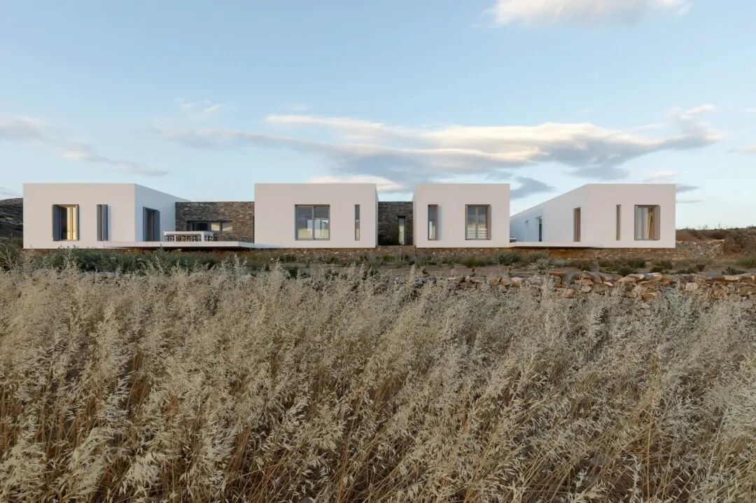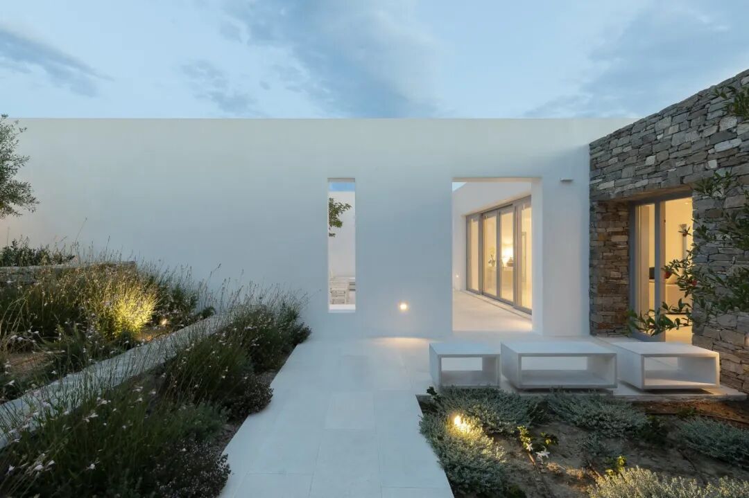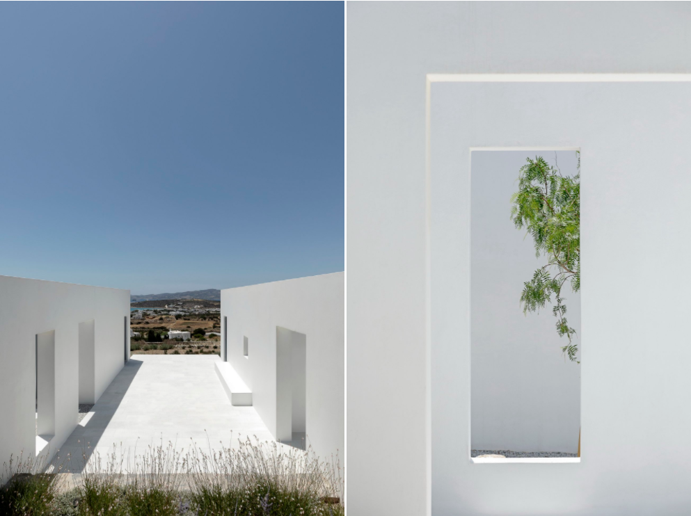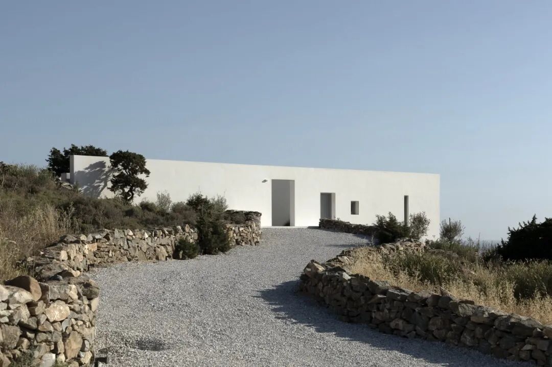 Project Description The plot is in the southern part of Paros Island. It has a southwest orientation on the long side, overlooking the sea, the bay of Aliki and Antiparos. The building rests on the hillside and adapts to the topography and the terrain's morphology.