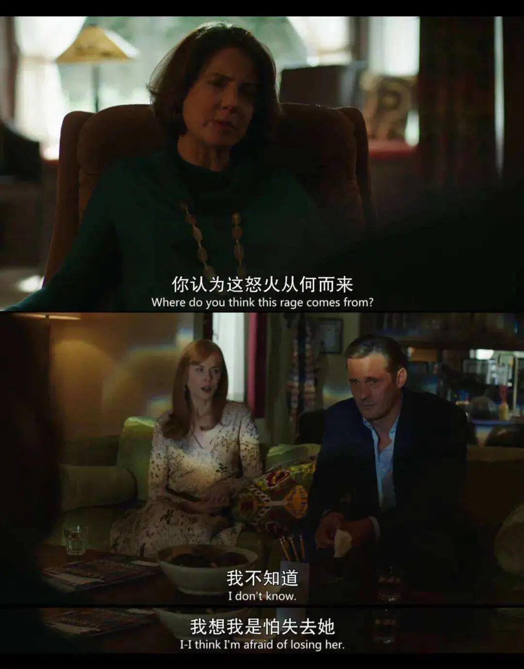 《大小谎言》中,妮可饰演的瑟莱丝特和丈夫咨询心理医生。