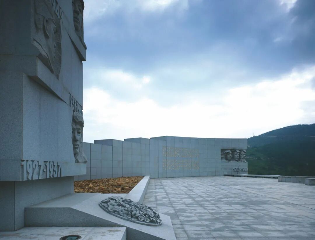 建碑的地址选择在南山公园南门附近,地形起伏变化很大,局部地段十分陡峻,特殊的基地情况给方案构思带来许多意想不到的灵感和启示。做成一组碑群继而形成一个清晰的序列和程序的想法油然而生。