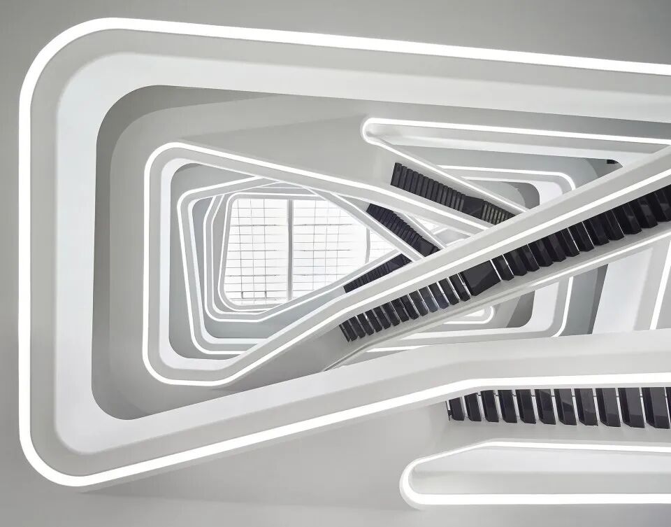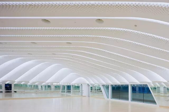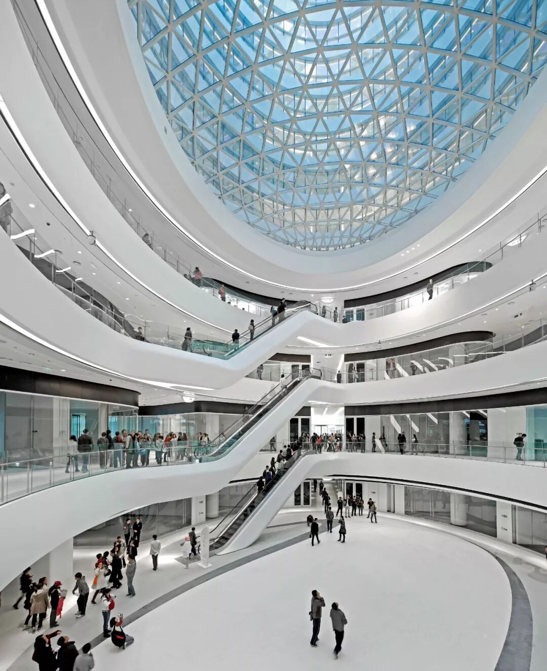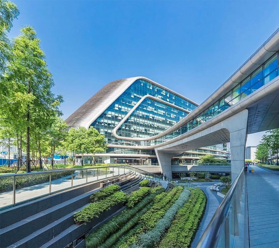 凌空SOHO位于上海大虹桥区域,从建筑到室内再到景观,均以极简的曲线为造型元素,设计极富动感和现代气息,以流畅的曲线缔造出具有时代感的城市新地标。