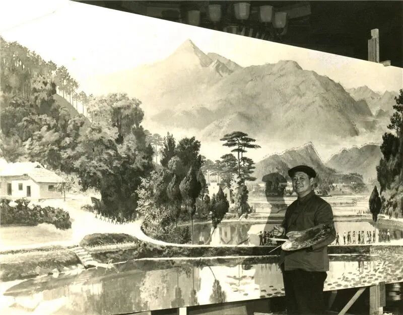 ▲1973年周令钊在全国政协礼堂画油画《韶山》