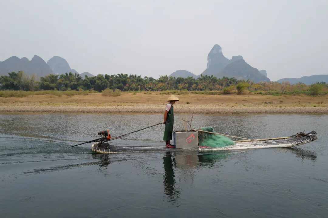 漓江巡游中还探访到一些水域,可以看到本地人借漓江水洗衣、垂钓,据说夏日,各国的旅行者和本地人都会不约而同地将部分水域征作“水上游乐场”,尽享嬉水之乐,期待在夏日重访感受天然水上游乐场之乐。