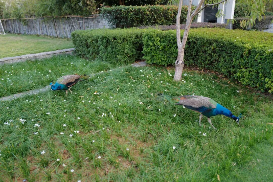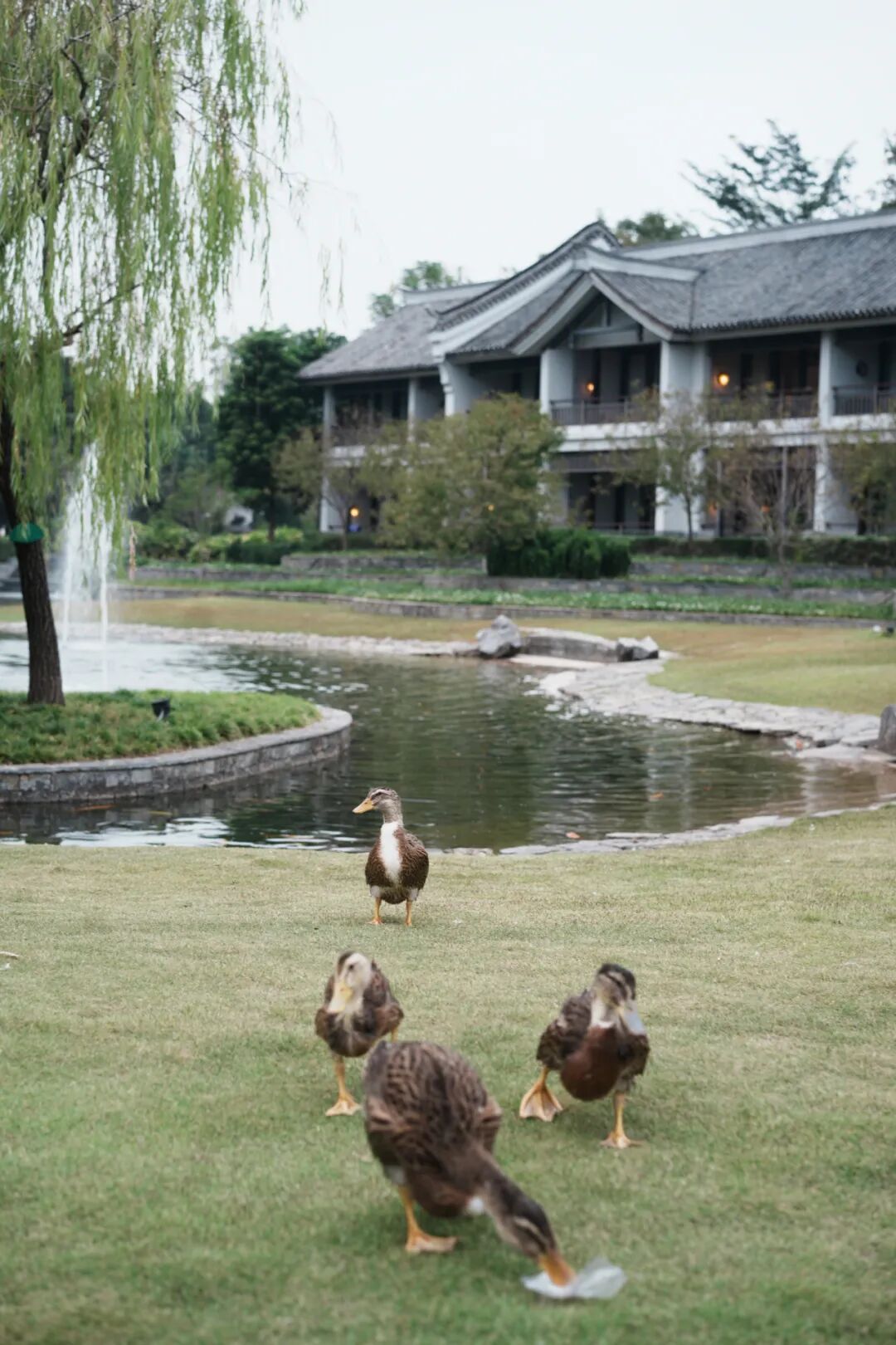 酒店还由优美的园林和水系贯穿,并栖息着大批动物居民——包括鸭子、鸳鸯和孔雀,他们在酒店中闲庭信步,从容地与宾客互动,让酒店的宁静村落氛围更呼之欲出。