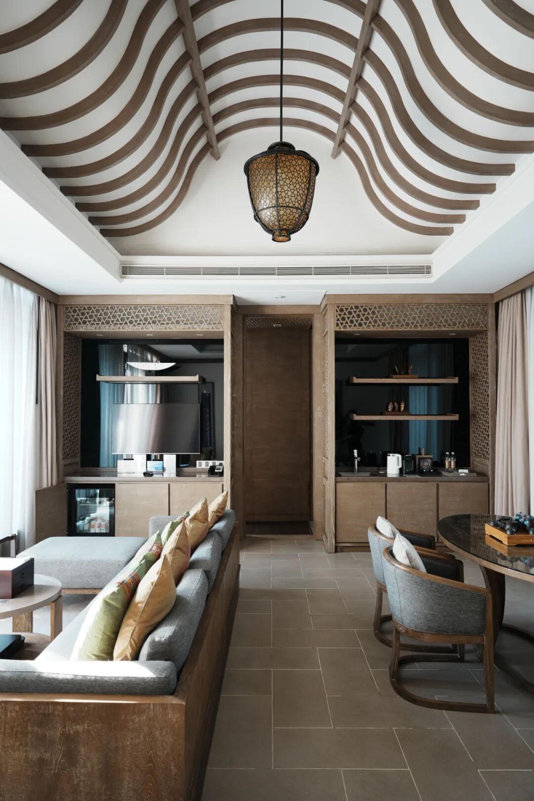 居室由曲线木梁和弧形顶线勾勒的房顶,将本地民居的特质演绎得细腻且俏皮。