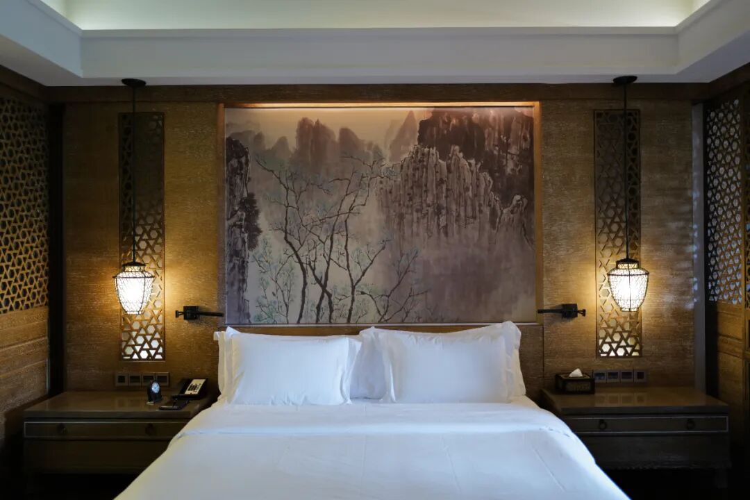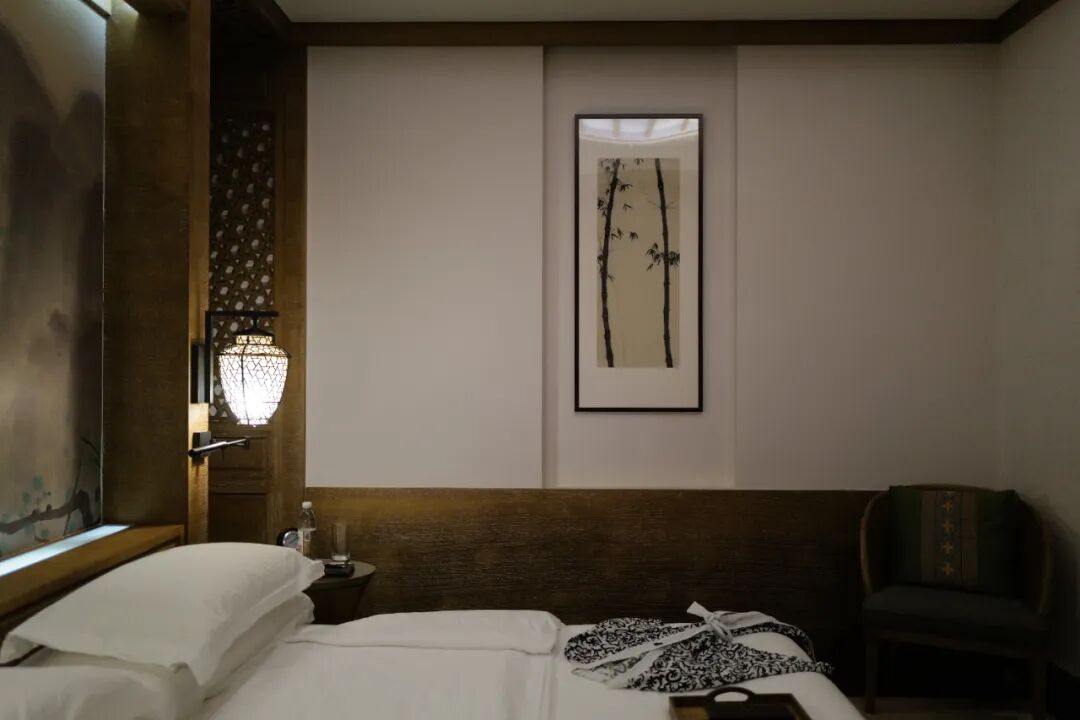 房间里不仅有展现竹和桂林山水的精彩画作,也有精美温润的手工木艺,还有一系列配合悦榕庄“养修轩”的配置和礼遇: