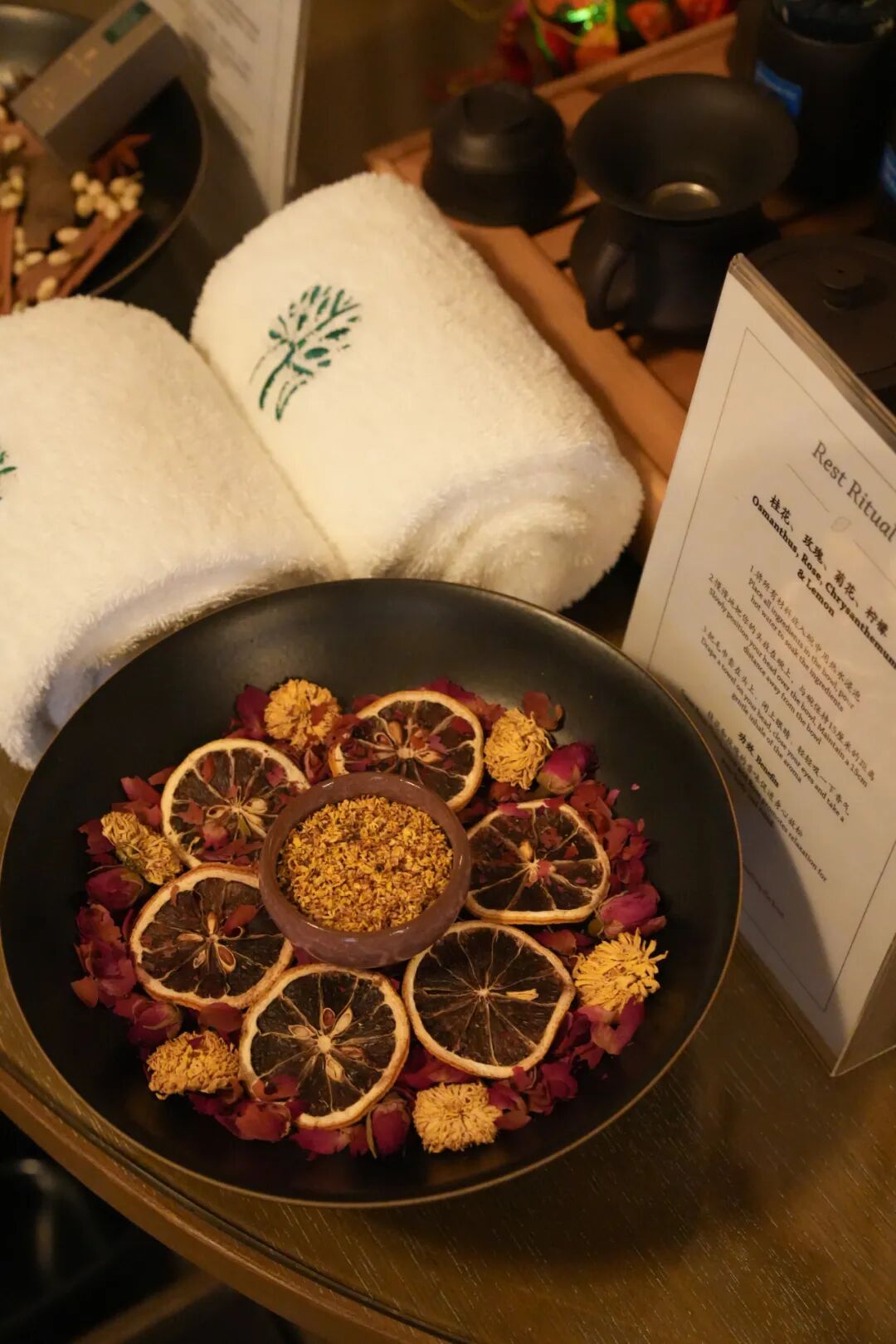 我享用到了由诸多植物(包括当时应季的桂花)荟萃的浸浴体验,植物和特选精油让人无比放松,让连续快节奏的我获得了难得的舒缓,“放下”了焦虑和压力。