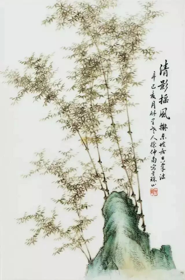 把传统的绘画、书法、诗词、金石融入瓷绘,又以大小器件和各种立件型制构绘画面,以瓷为本,彰现中国传统文化。