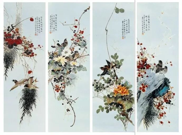 刘雨岑丨粉彩《寒鹊腊梅—白头海棠》