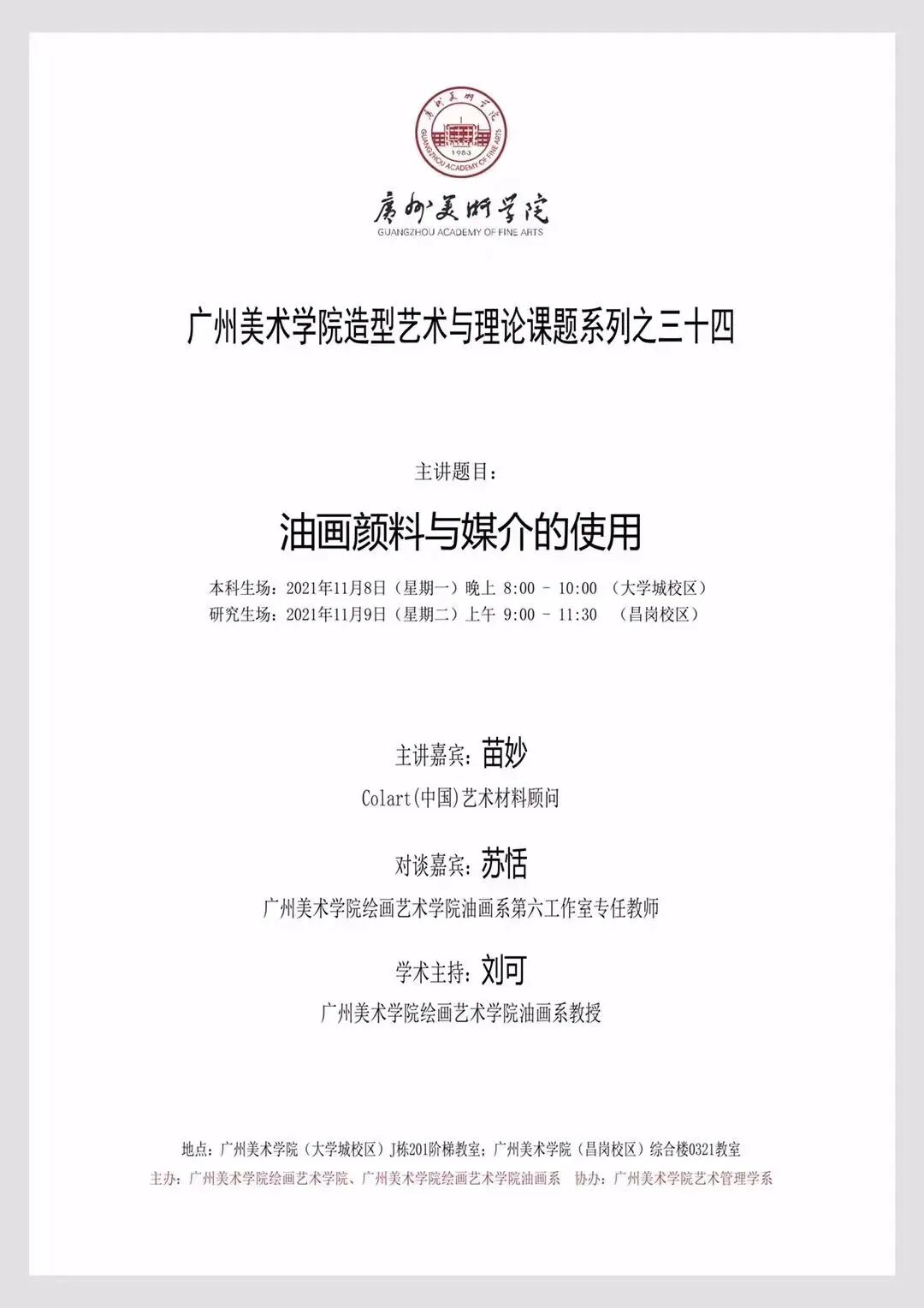 今晚八点,广州美术学院大学城校区J201阶梯教室;以及明早九点,广州美术学院昌岗校区综合楼0321教室,新鬼专栏作者苗妙,将为朋友们分享“油画颜料和媒介的使用”专业课题,欢迎前去听听。