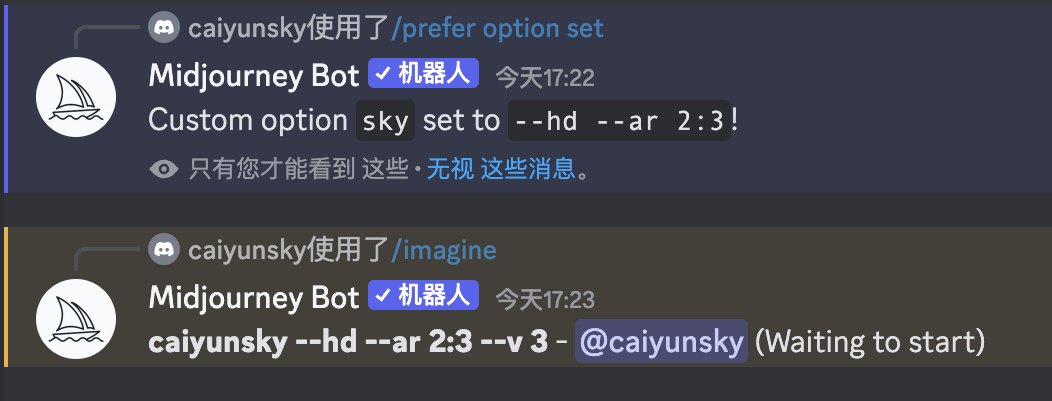 比如图片比例 --ar 2:3 ,作画模式 --test--creative (可以让画出来的东西更加细腻)