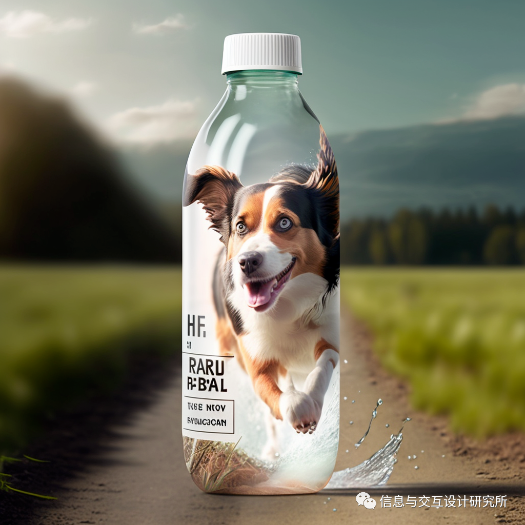 奔跑的狗狗进入标签(a pet bottle packaging with a running dog on its label)。